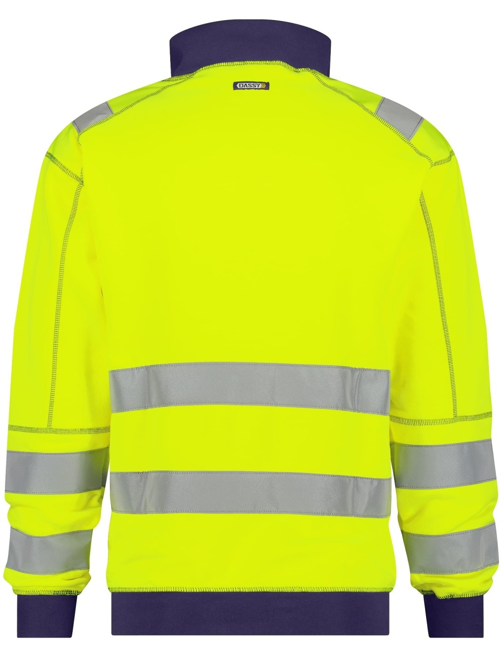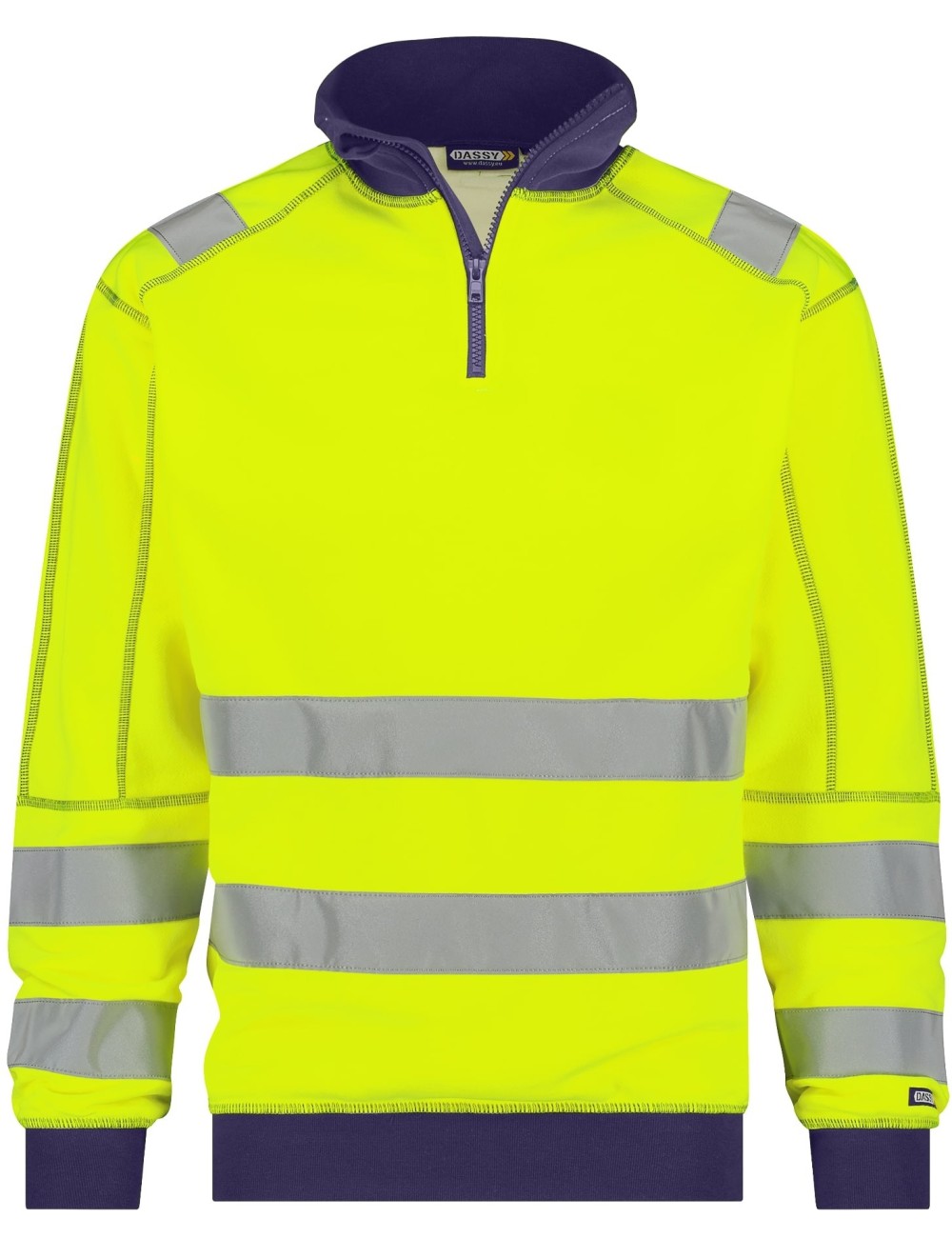 Un Bluza de inalta vizibilitate de la renumitul brand Dassy . Fabricat din poliester si bumbac, este disponibil in galben reflectorizant cu insertii bleumarin pe guler, mansete si tiv. Doua dungi reflectorizante diagonale in jurul burtii si pe maneci, precum si dungi reflectorizante pe umeri, sporesc vizibilitatea dupa lasarea intunericului. Gulerul rotund este finisat cu o manseta elastica. Mansetele elastice se gasesc si in partea de jos a hanoracului, in jurul taliei si pe maneci, impiedicand patrunderea aerului rece pe sub hanorac. Interiorul este captusit cu fleece moale. Acest produs este perfect pentru ingrijitori, lucratori in intretinere si soferi profesionisti. Poliesterul ofera confort termic si protejeaza impotriva frigului si a vantului. Bluza este disponibil in marimile de la S la XXL.