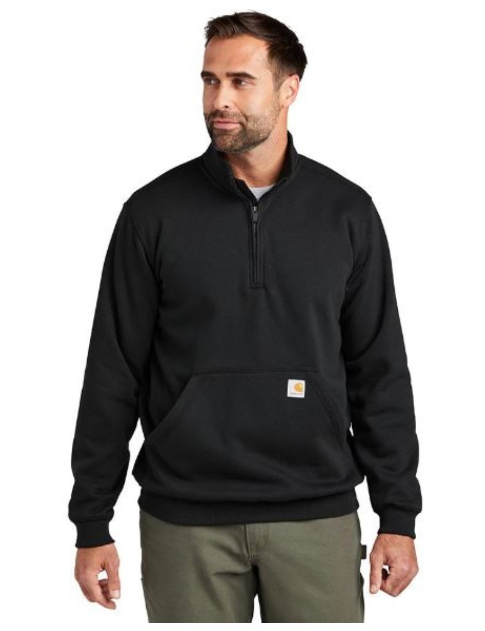 bluza robust Carhartt Midweight Quarter-Zip Work, cu guler inalt si buzunar frontal clasic, este un model care va atrage atat mesterii amatori, cat si pasionatii de DIY, precum si fanii stilului american workwear . Croiul lejer caracteristic produselor Carhartt ofera mult confort si nu restrictioneaza miscarea. Gulerul inalt si mansetele si talia cu nervuri protejeaza eficient de frig.