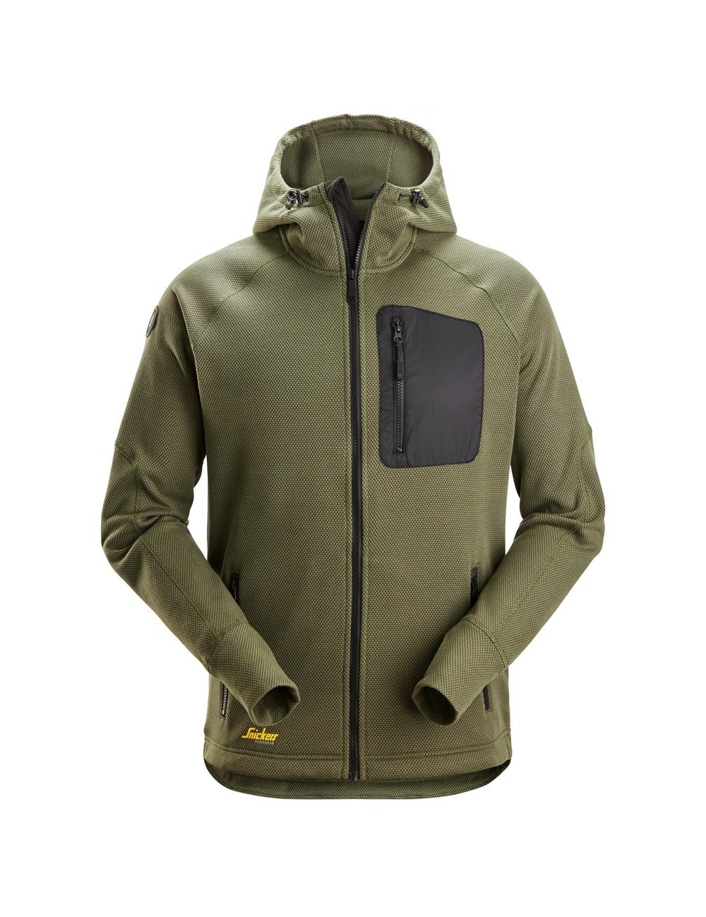 Bluza de lucru Snickers 8041 este confectionata din fleece calduros, cu interior periat. Se croieste confortabil, cu un tiv lasat la spate si o inchidere cu fermoar complet. Pentru protectie suplimentara impotriva vantului si a frigului, jacheta are o gluga reglabila. Mansetele lungi sunt prevazute cu orificii pentru degetele mari, pentru a preveni suflecarea manecilor. Buzunarele laterale si de la piept cu fermoar ofera o potrivire confortabila. Bluza de lucru Snickers 8041 este perfecta ca strat intermediar sau ca inlocuitor de jacheta in zilele mai calde.