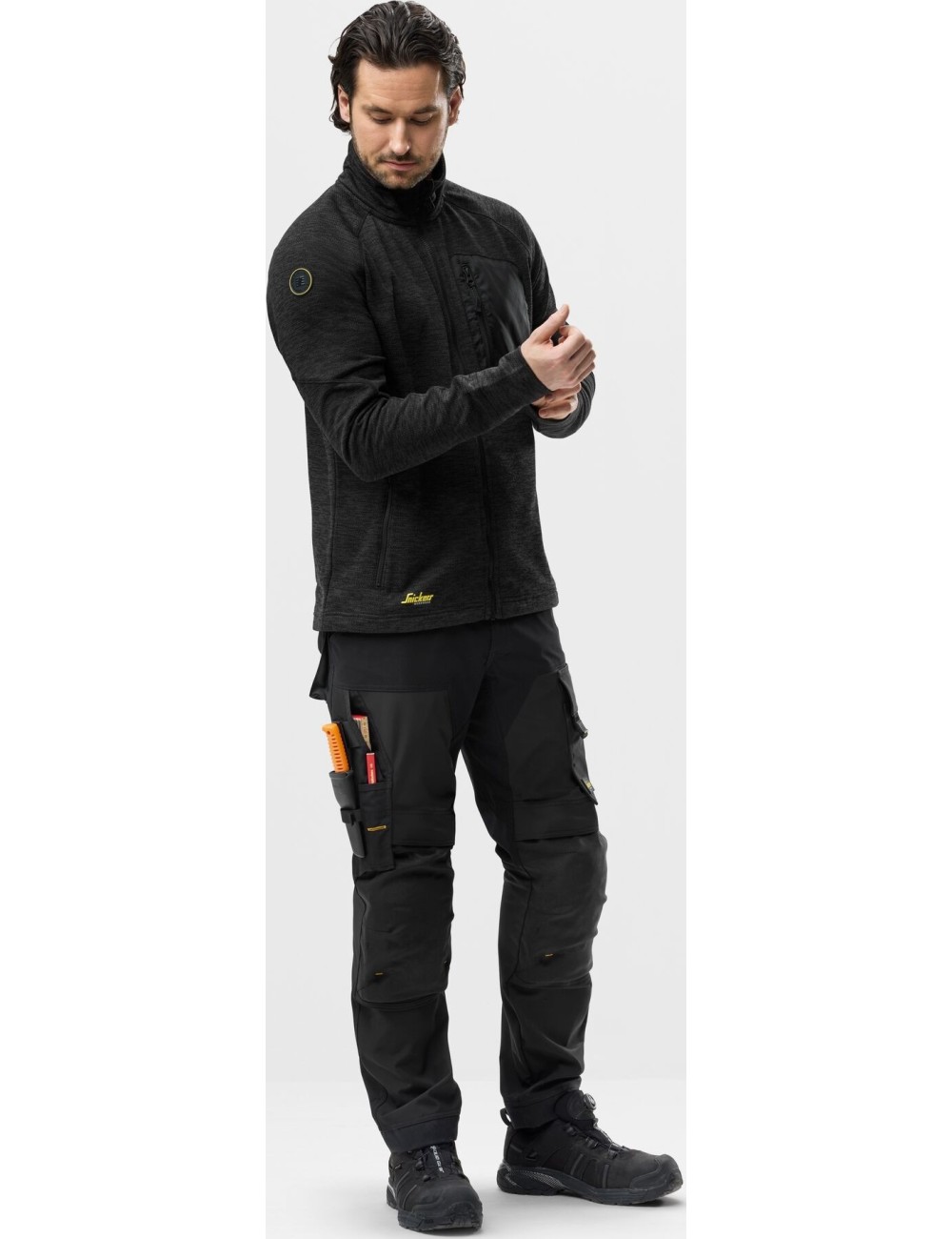 Experimenteaza confortul la locul de munca cu hanoracul de lucru Snickers Flexiwork. Bluza de lucru Snickers 8042 este confectionat din fleece moale, cu textura de plasa, fiind respirabil si oferind confort termic. Interiorul periat asigura o retentie excelenta a caldurii. Este prevazut cu un buzunar impermeabil cu fermoar la piept. Bluza este potrivit ca strat intermediar, dar poate inlocui cu usurinta si o jacheta in zilele mai calde. Bluza de lucru Snickers 8042 are un design ergonomic si confortabil, cu un tiv lasat la spate si gauri pentru degetele mari in maneci.