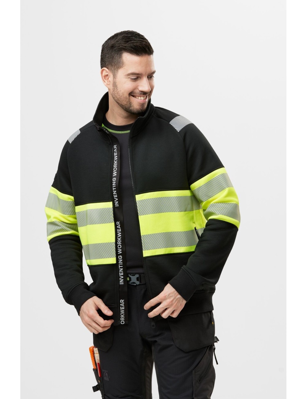 Bluza Snickers 2834 este confectionat din material de poliester-bumbac de inalta calitate, iar interiorul este periat pentru un confort sporit si este deosebit de placut in zilele reci de toamna. Bluza este certificat conform standardului EN ISO 20471 Clasa 1 si asigura o vizibilitate excelenta chiar si in conditii de vizibilitate redusa. Un imprimeu reflectorizant si o banda reflectorizanta sub fermoarul „Inventing workwear ” sporesc si mai mult vizibilitatea purtatorului, ceea ce este crucial pentru asigurarea sigurantei pe santier.