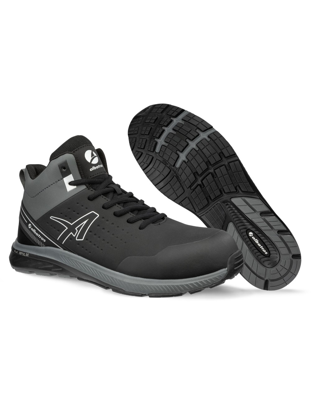 Ghetele de lucru Albatros Vigor 2 black Mid S3 Bocanci de lucru sunt o versiune noua a modelului Vigor Black , cu o prelucrare si mai buna, un confort si un design considerabil imbunatatit. Usoare si durabile, sunt fabricate din microfibra usor de curatat. Utilizarea materialelor moderne pentru protejarea degetelor de la picioare si a piciorului permite o greutate remarcabil de redusa. Vigor 2 ofera protectie de nivel S3 cu un varf protector din fibra de sticla si o talpa interioara flexibila. Talpa antiderapanta DUAL. IMPULSE cu Foam Impulse moale absoarbe energia in timpul mersului, protejand articulatiile si coloana vertebrala a utilizatorului de solicitari.