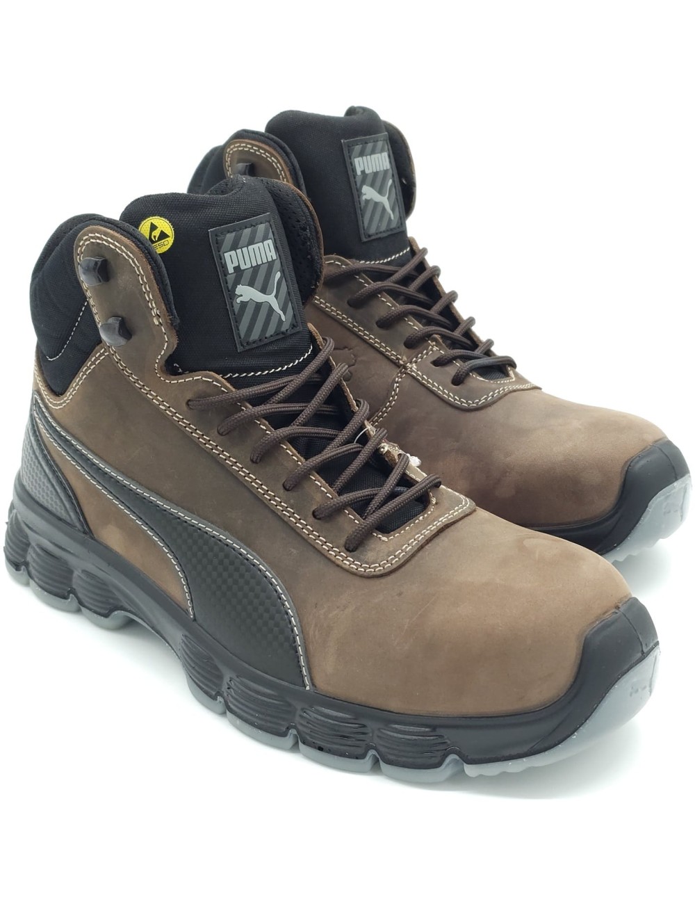 Pantofii de lucru Puma Condor confectionati din piele nubuc, sunt conceputi pentru aplicatii mai usoare, cum ar fi lucrari de supraveghere, transport si depozitare. Ideali pentru industriile care necesita un numar mare de pasi zilnici, datorita amortizarii eficiente a talpii EFFECT.FOAM®. Tehnologia de constructie a talpii absoarbe eficient energia in timpul mersului, reducand presiunea asupra coloanei vertebrale si a articulatiilor. Condor sunt pantofi cu clasa de protectie S3, cu varf protector si o talpa interioara usoara si flexibila, care protejeaza piciorul de intepaturi. Pantofii indeplinesc toate standardele de siguranta necesare si sunt, de asemenea, certificati ESD - pentru incaltaminte care protejeaza impotriva electricitatii statice.