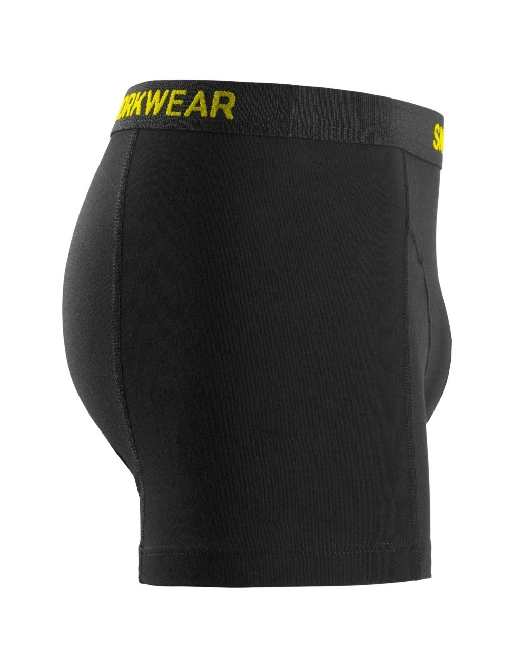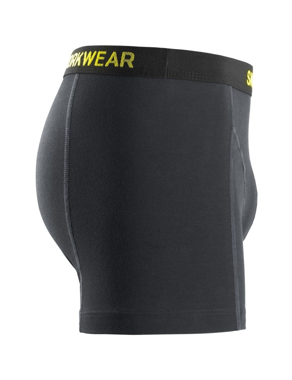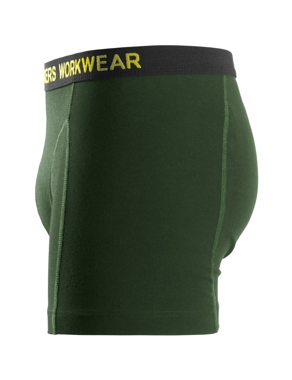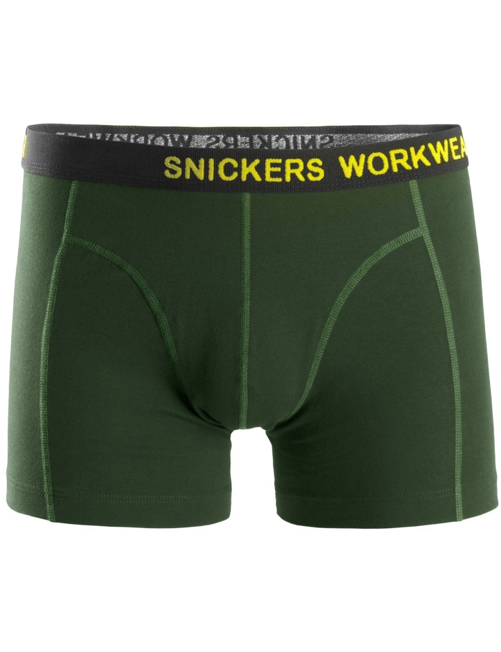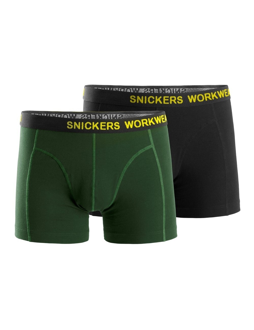 Acesti boxeri barbatesti incredibil de confortabili de la Snickers sunt confectionati din 95% bumbac si 5% elastan, cu o tesatura groasa de 210 g/m². Materialul stretch asigura moliciune, o potrivire excelenta si un nivel ridicat de confort. Au o talie elastica lata si confortabila, cu un logo contrastant al marcii. Acesti boxeri au cusaturi rezistente si intarite. Nu restrictioneaza miscarea si sunt perfecti pentru purtarea zilnica. Setul include doua perechi in doua optiuni de culoare: negru cu bleumarin sau negru cu verde.