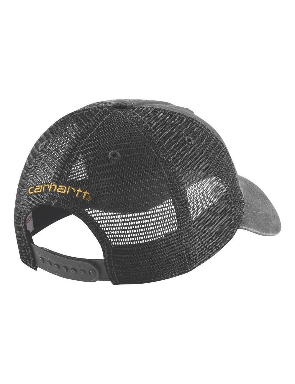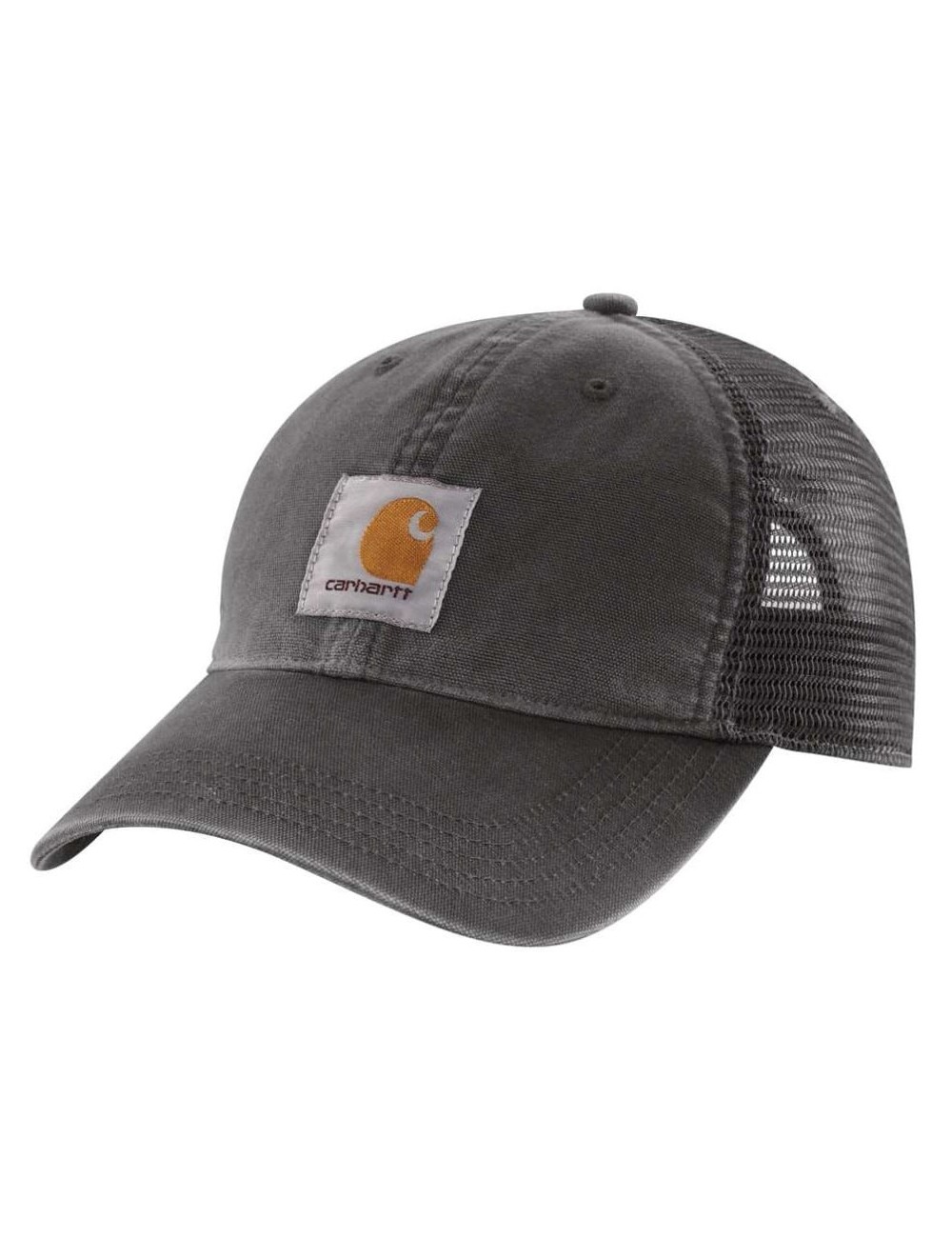 O sapca clasica americana de camion, cu partea din spate ventilata si un logo mare pe fata, este Cap Buffalo de la brandul popular de pe piata imbracamintei stradale si de lucru, Carhartt .