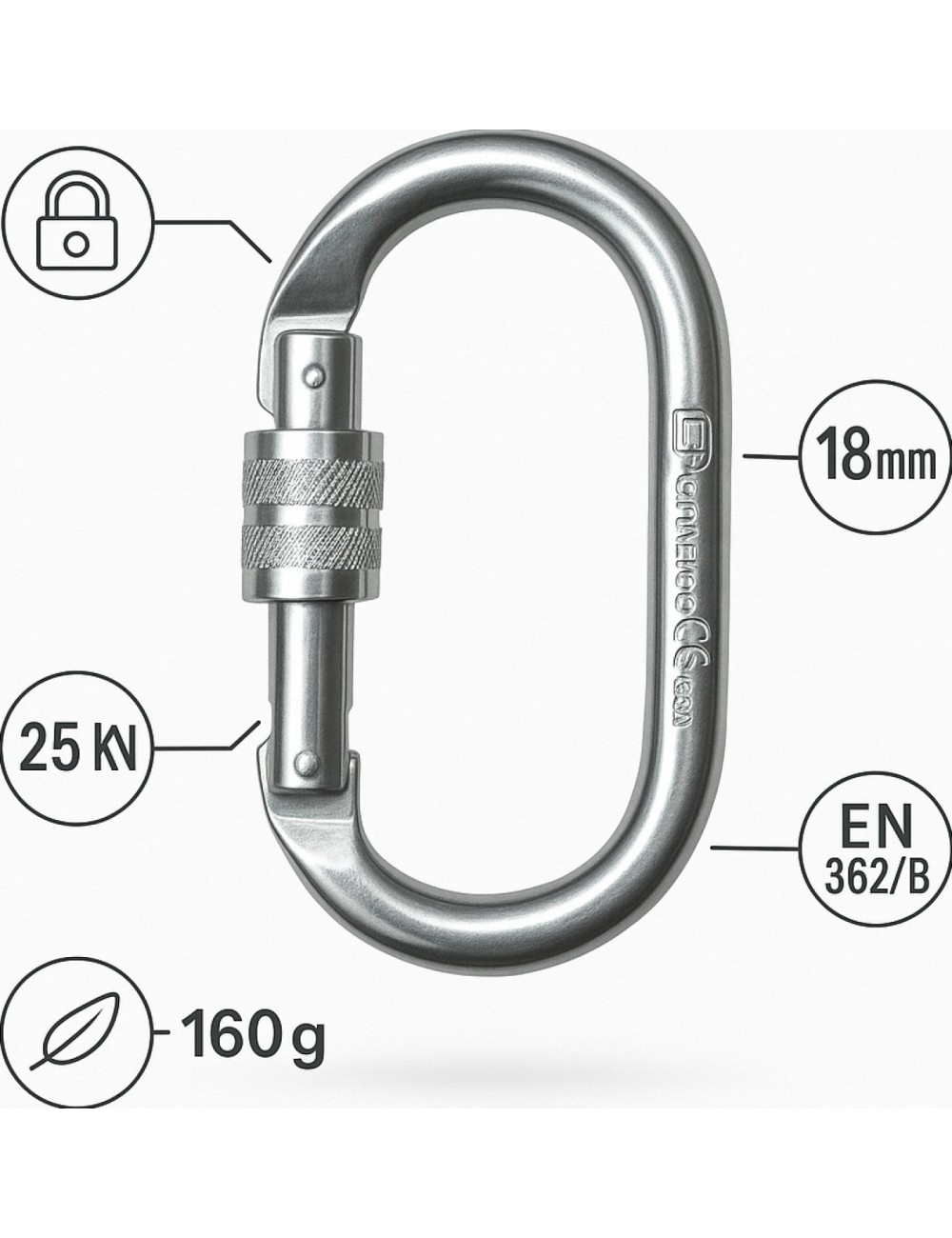 - Conformitate cu standardul EN 362/B – respecta standardele europene de siguranta pentru echipamentele de protectie impotriva caderii.