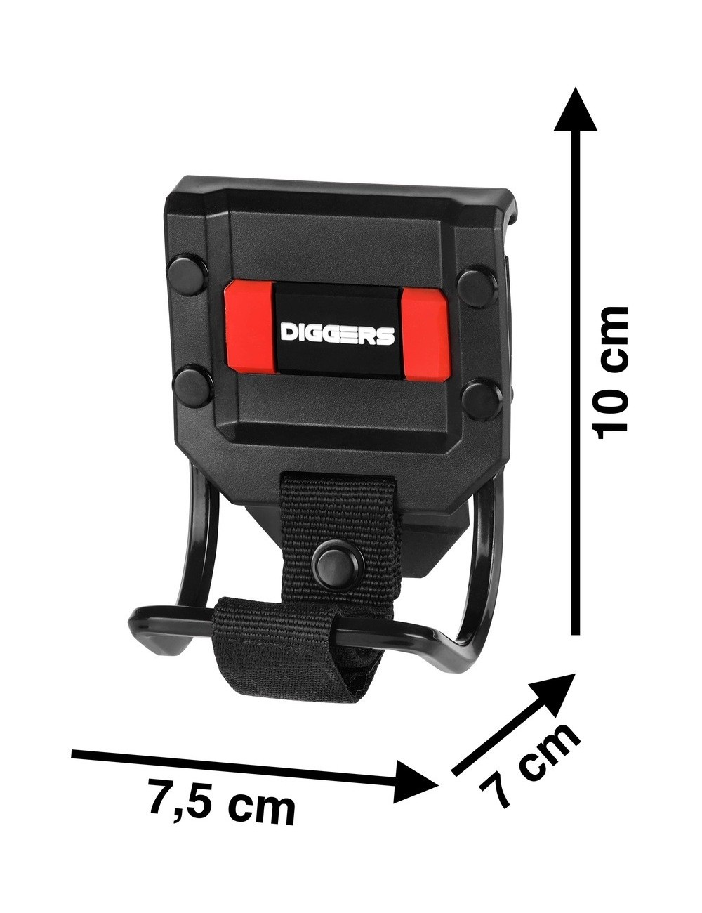 Suportul pentru ciocan Diggers Hammer Loop de la Diggers este un adaos indispensabil la o curea sau o husa pentru scule. Suportul este fabricat din metal de inalta rezistenta si plastic ABS, nituit cu nituri de otel. Suportul este fixat cu o catarama foarte puternica si durabila. Se potriveste tuturor tipurilor de curele pentru scule si functioneaza cu toate tipurile de ciocane. Suportul are o curea Velcro care poate fi folosita pentru a tine, de exemplu, un snur de surubelnita sau alte scule.