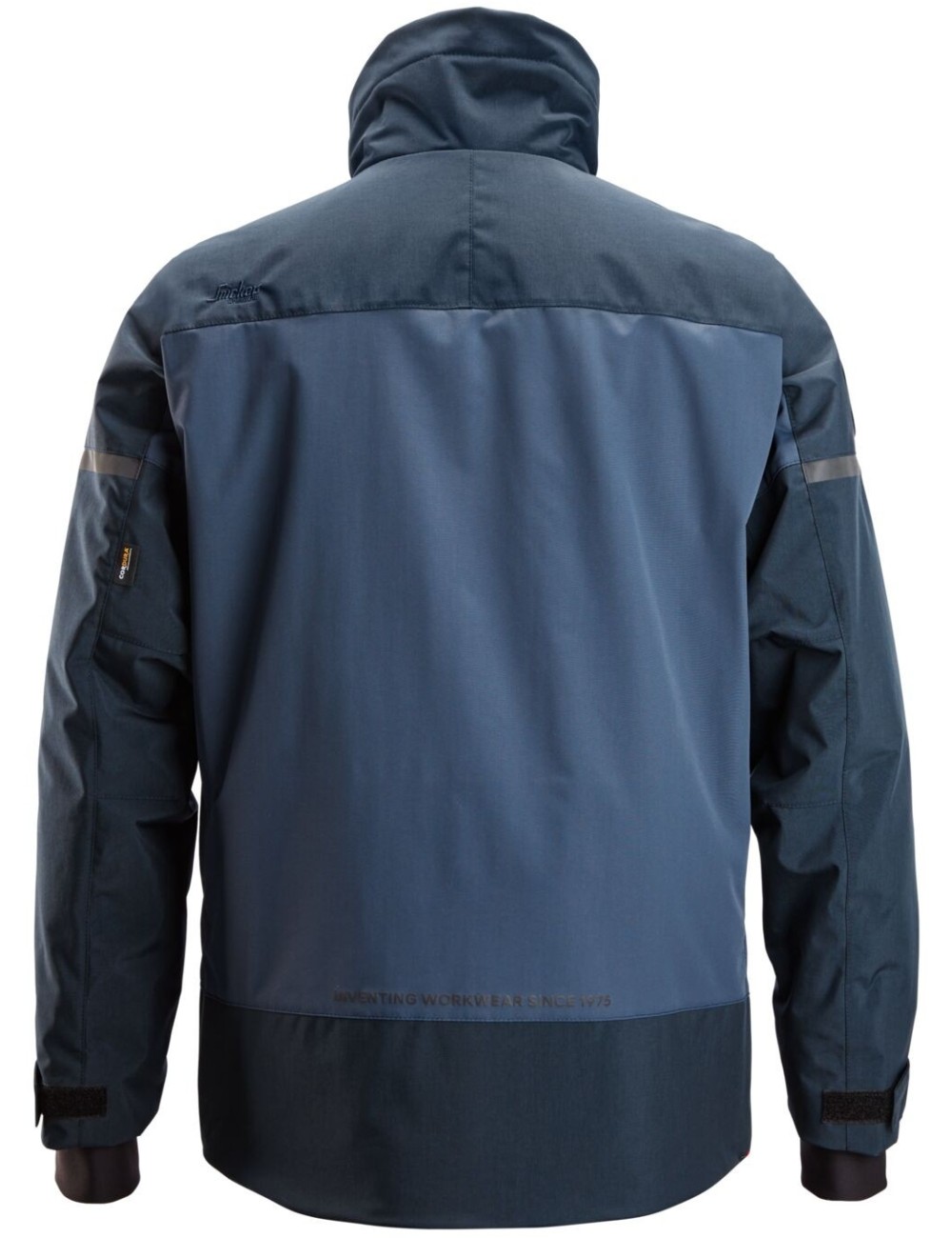 Geaca de lucru iarna Snickers 1106 Allroundwork este un model nou de geci de lucru calduroasa, fara gluga, pentru temperaturi extrem de scazute. Fabricata din material rezistent la vant si impermeabil, ofera o protectie excelenta impotriva conditiilor meteorologice dure. Toate cusaturile sunt sigilate si impermeabile. Gulerul inalt si ridicat protejeaza impotriva rafalelor de vant. Spatele prelungit si manecile rezistente la furtuna cu orificii pentru degetele mari impiedica patrunderea aerului rece pe sub jacheta. Materialul principal este elastic, ceea ce face ca jacheta sa fie foarte confortabila de purtat. Zonele rezistente la impact sunt intarite cu un strat solid de material Cordura in aceeasi culoare cu geci .
