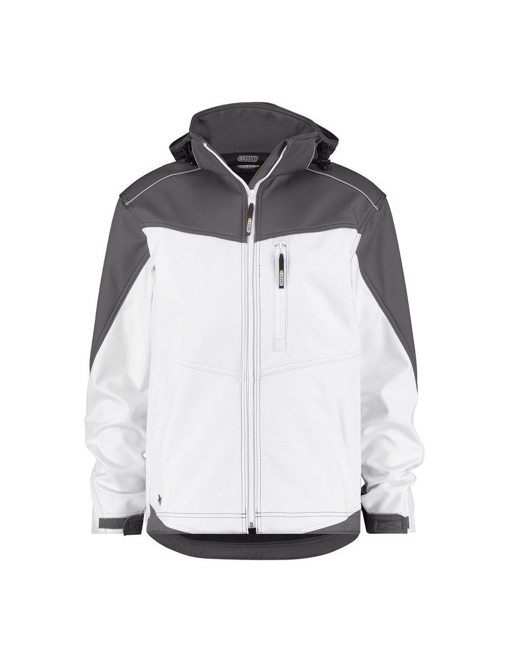 Geaca softshell alba Dassy Jakarta din colectia conceputa pentru zugravi si finisatori de interior. Materialul softshell alb rezista cu usurinta prafului si murdariei generate in timpul lucrarilor de finisare si este impermeabil si durabil. Geaca este complementul perfect pentru tinuta de lucru atunci cand faceti naveta intre santiere sau vizitati clientii.