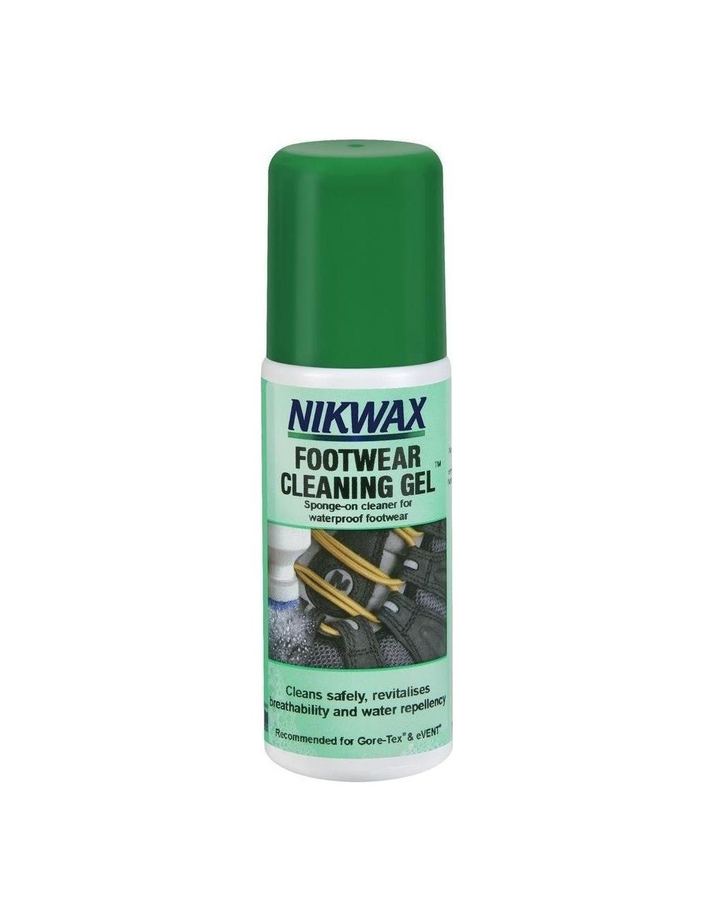 Gelul de curatare pentru incaltaminte Nikwax , un produs de 125 ml, este potrivit pentru toate tipurile de incaltaminte. Poate fi utilizat pe incaltaminte impermeabila. Aplicatorul burete faciliteaza aplicarea completa a produsului pe intreaga suprafata a incaltamintei. Indeparteaza eficient murdaria si grasimea fara a deteriora bocancii de lucru. Reface impermeabilitatea si mentine respirabilitatea. Solutia de curatare este complet sigura pentru utilizare si pentru mediu - netoxica, neinflamabila si fara fum. De asemenea, nu contine fluorocarburi sau alte substante toxice.