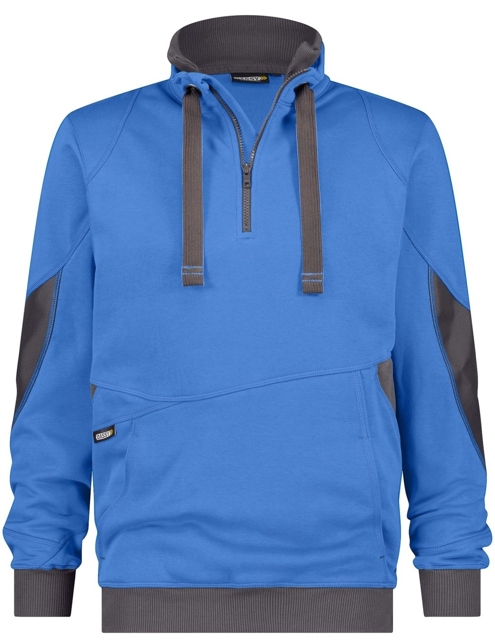 Bluza de lucru Dassy Stelar este o alegere unica pentru zilele reci. Materialul este moale pe piele, dar durabil, datorita utilizarii bumbacului si poliesterului. Insertiile Cordura in zonele de uzura sporesc durabilitatea produsului. Cusaturile solide, cu ac dublu, intr-o culoare contrastanta, ofera protectie suplimentara impotriva ruperii. Acest hanorac de lucru are un guler dublu cu un strat interior tricotat. Se inchide cu fermoar si este, de asemenea, reglabil cu un snur de strangere, oferind o protectie excelenta impotriva frigului. Mansetele tricotate asigura o potrivire perfecta. Bluza Dassy are buzunare exceptional de functionale. Un buzunar mare tip cangur in fata si un buzunar sigur pe lateralul hanoracului va vor pastra lucrurile esentiale. Partea din fata este infrumusetata cu un detaliu logo marcii. Acest hanorac este perfect pentru tinuta de lucru, indiferent de locul de munca. Designul casual il face potrivit atat pentru activitati active, cat si pentru activitati de agrement. Materialul hanoracului Stellar este potrivit pentru branding - puteti comanda un hanorac cu un imprimeu sau o broderie cu logo companiei dvs.