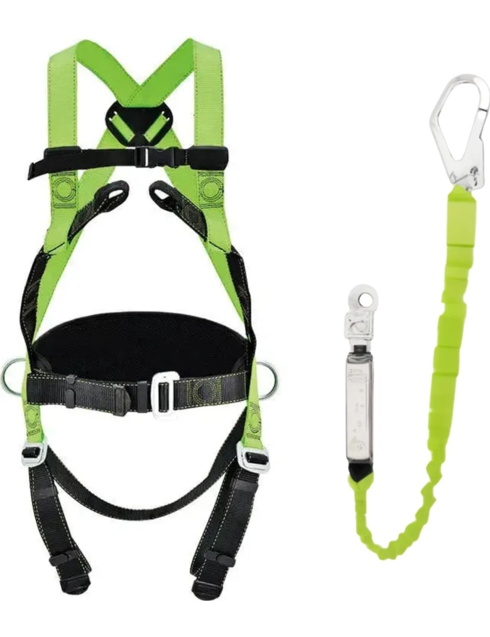 Setul include: un ham de siguranta Glider cu 3 puncte de prindere si un amortizor flexibil cu carlige cu arc.