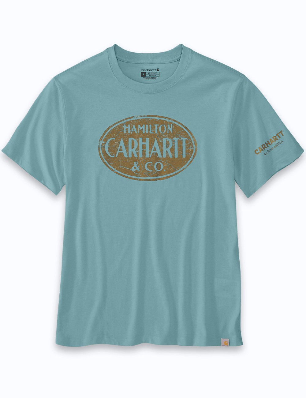 - Logo Hamilton Carhartt na piersi, podkreślające charakter koszulki