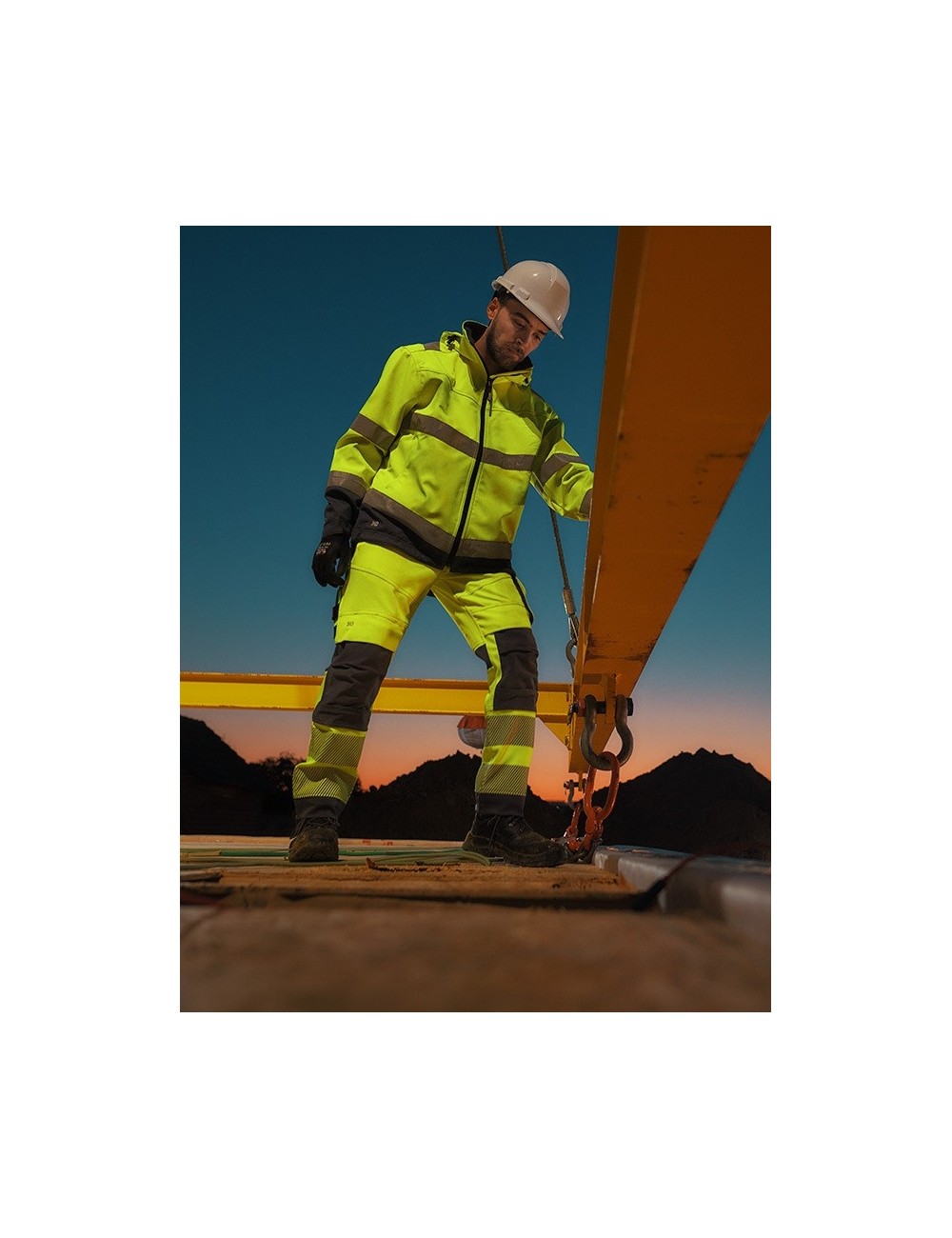 Trójwarstwowy softshell Dassy Malaga wykonany z wiatro- i wodoodpornej, technicznej tkaniny. Polarowa podszewka zapewnia komfort termiczny w chłodne dni. Dzięki funkcjonalnym detalom, takim jak regulowane mankiety i talia, odpinany kaptur i przedłużany tył, kurtka zapewnia optymalną ochronę w trudnych warunkach atmosferycznych. Ostrzegawczy kolor oraz zastosowane w produkcie odblaskowe taśmy o szerokości 5 cm gwarantują doskonałą widoczność. Softshell Dassy Malaga wyposażono w zamek błyskawiczny z ochroną podbródka, a także w wewnętrzną kieszeń oraz kieszonkę na telefon. Podwójne szwy zwiększają trwałość produktu, a elastyczna, oddychająca tkanina daje niezrównany komfort użytkowania.