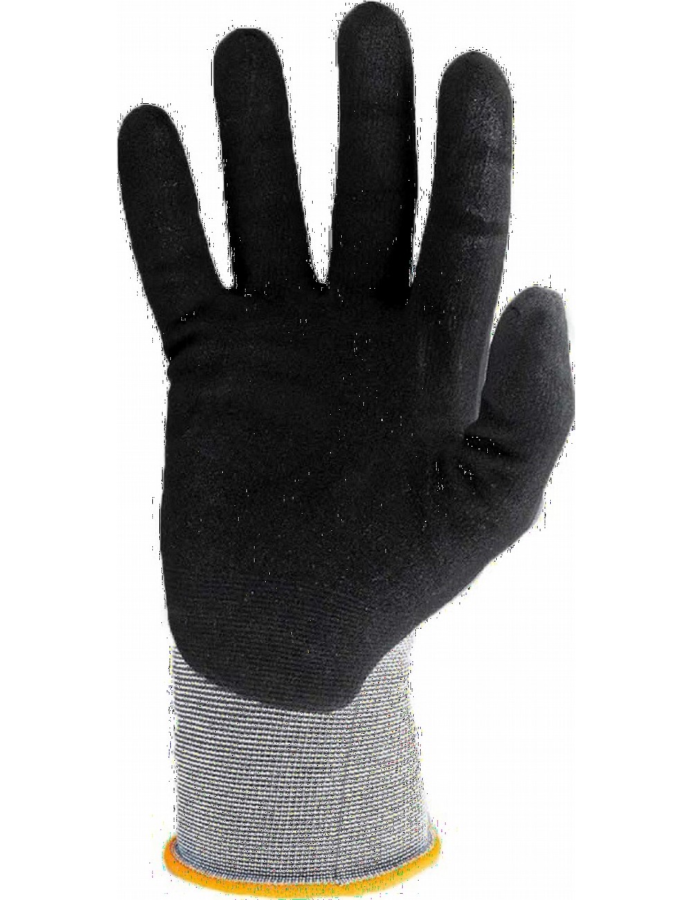 Manusi de lucru confectionate din tesatura tricotata din poliamida gri, acoperite cu un strat de nitril hidrofob. Avand o lungime totala de aproximativ 25 cm, aceste manusi se potrivesc perfect. Protejeaza impotriva abraziunilor, ofera o priza buna datorita stratului de acoperire rugos si sunt, de asemenea, rezistente la ulei si umezeala, intr-o masura mai mica. Utilizarea unei tesaturi tricotate cu grosime fina asigura o respirabilitate ridicata, fiind potrivite pentru ore lungi de lucru. Manseta este finisata cu o margine contrastanta, iar logo marcii este imprimata in relief pe spatele manusii. Produsul indeplineste cerintele standardului EN 388:2016.