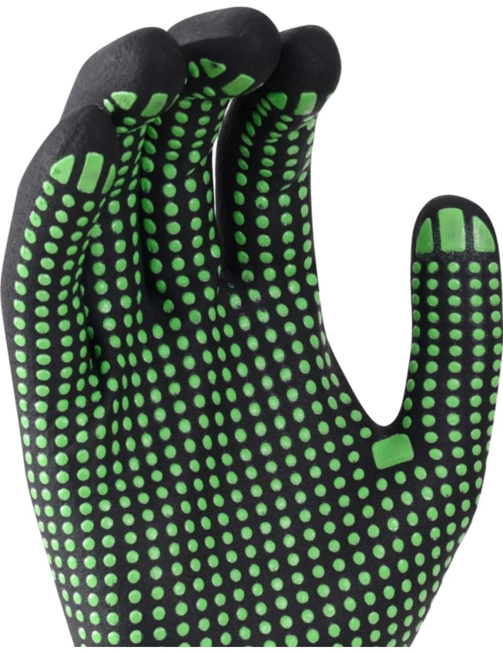 Da, in partea de prindere (pe palma) datorita nitrilului spumat si punctelor.