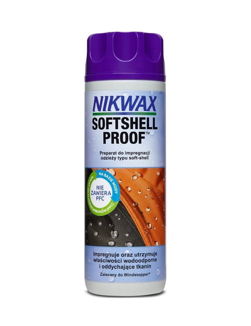 Nikwax Softshell Proof este conceput pentru impermeabilizarea hainelor softshell . Imbunatateste rezistenta durabila la apa (DWR) a hainelor, promovand in acelasi timp respirabilitatea. Produsul este incredibil de usor de aplicat - poate fi folosit la masina de spalat sau manual. Nu necesita caldura pentru a fixa finisajul hidrofug - pur si simplu uscati-l la temperatura camerei. Produsul nu va afecta aspectul hainelor tratate. Este sigur pentru mediu si pentru utilizator, este neinflamabil si nu contine substante nocive. Trebuie aplicat pe haine curate; producatorul recomanda utilizarea unor produse de curatare speciale care nu vor deteriora DWR-ul.