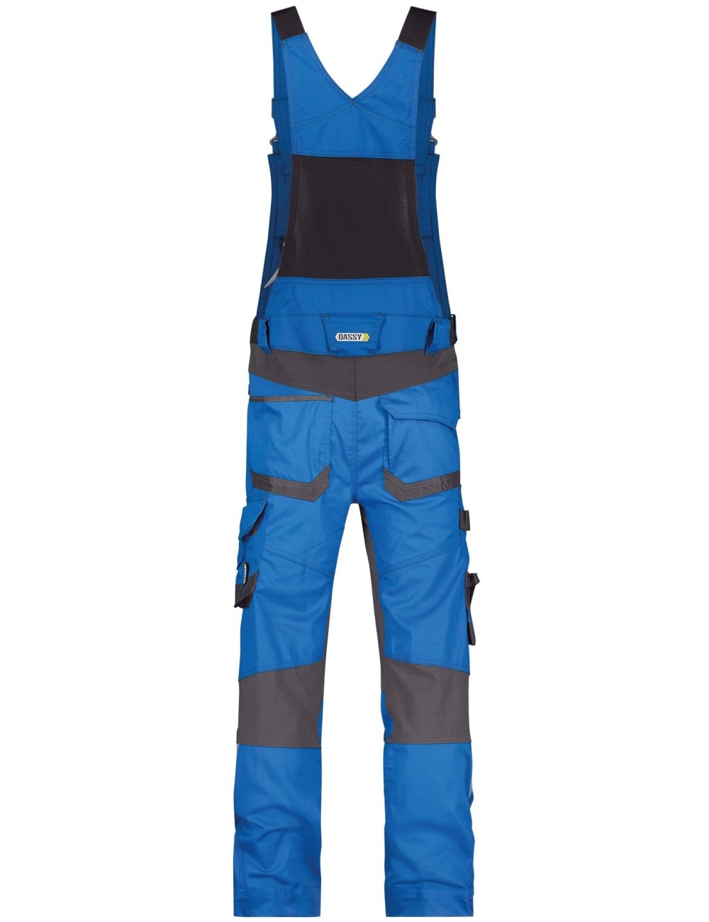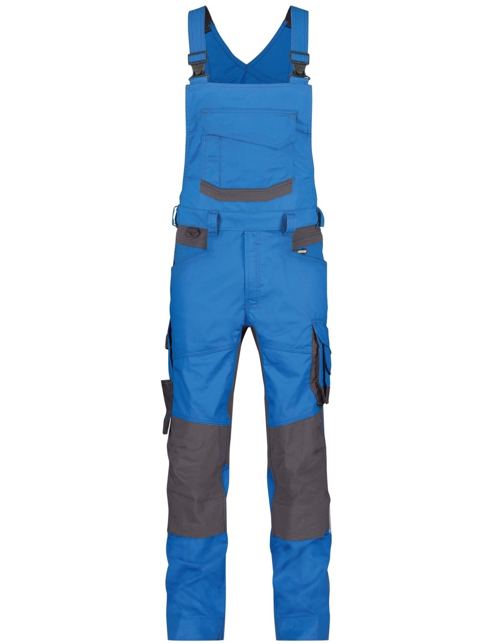 Męskie ogrodniczki robocze Dassy Tronix o dobrze dopasowanym, nowoczesnym kroju. Wyróżniają się niezwykle elastycznym, wygodnym materiałem oraz licznymi wstawkami ze stretchu, dzięki czemu są o wiele wygodniejsze niż inne spodnie robocze tego typu. Elastyczne panele znajdują się nie tylko po bokach, ale także z tyłu poniżej pasa, z tyłu kolan oraz w kroku. Regulowane kieszenie na nakolanniki wykonane z mocnej Cordury są odporne na przetarcia i uszkodzenia.
