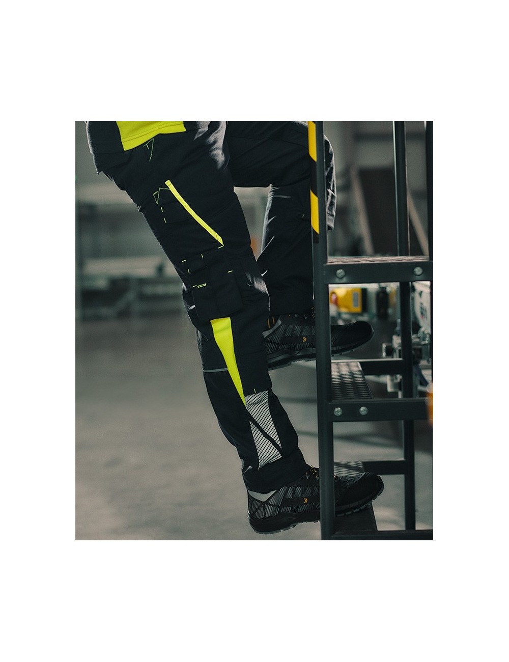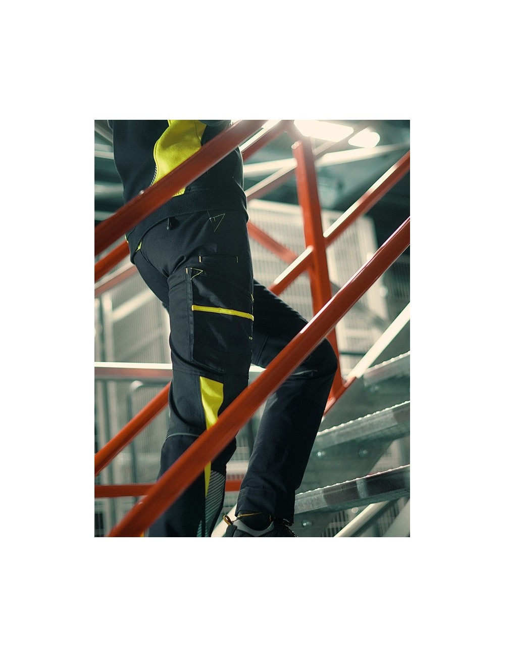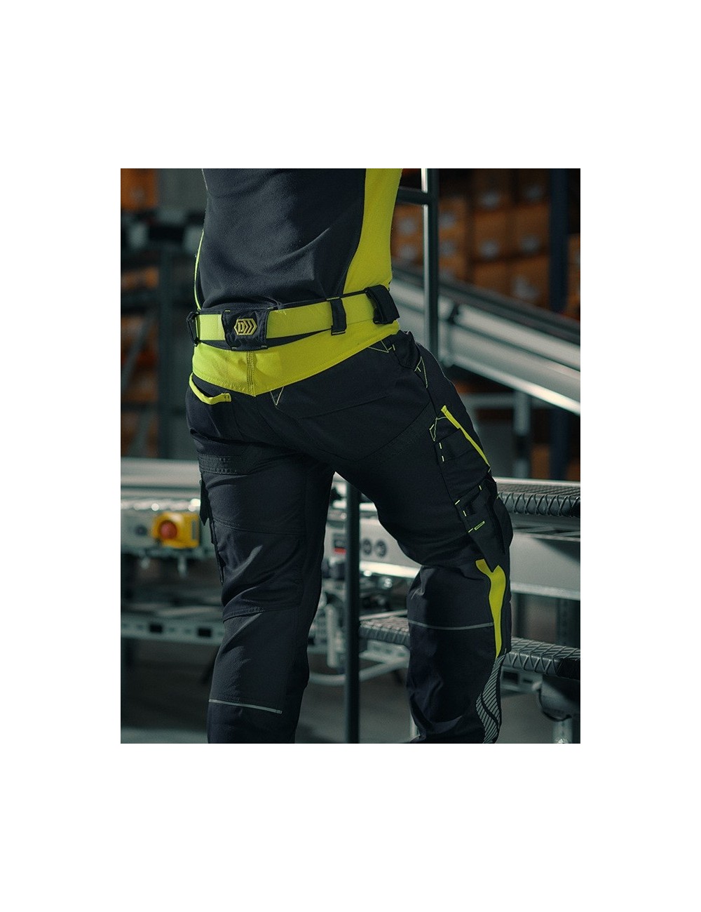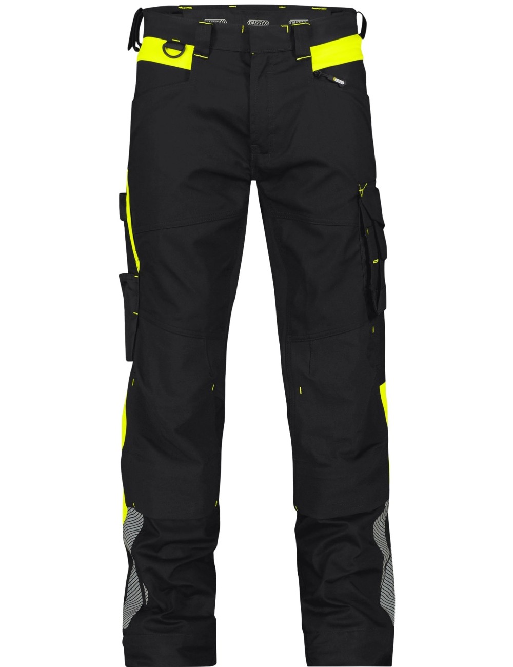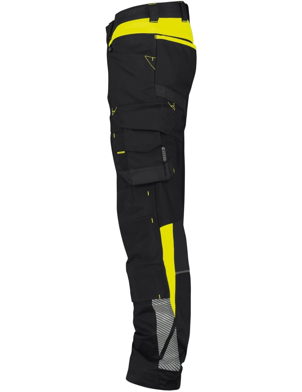 Pantaloni de lucru eleganti Dassy Canton din noua colectie Logix , cu panouri elastice, buzunare pentru genunchiere si insertii contrastante in culori de inalta vizibilitate. Insertiile reflectorizante subtile asigura siguranta in conditii de vizibilitate redusa.