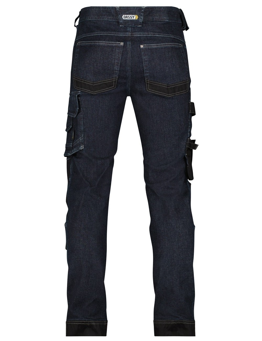 Blugii Dassy Kyoto stretch denim sunt confectionati dintr-un material foarte elastic, extensibil in patru directii, asigurand o libertate excelenta de miscare. Gramajul exceptional de mare al materialului - de pana la +/- 320 g/m² - este imbogatit cu cusaturi contrastante cu trei ac pentru o durabilitate sporita, iar zonele cele mai vulnerabile sunt intarite cu Cordura exceptional de durabila. Acesti blugi barbatesti, cu croiala lor moderna si ajustata, vor iesi fara indoiala in evidenta. Acestia sunt prevazuti buzunare pentru genunchiere confectionate din Cordura Stretch rezistenta la abraziune. Un numar mare de buzunare practice asigura ca toate uneltele si accesoriile esentiale sunt intotdeauna la indemana. Acesti pantaloni de lucru sunt complet siguri - marcati cu certificatul OEKO-TEX Standard 100.