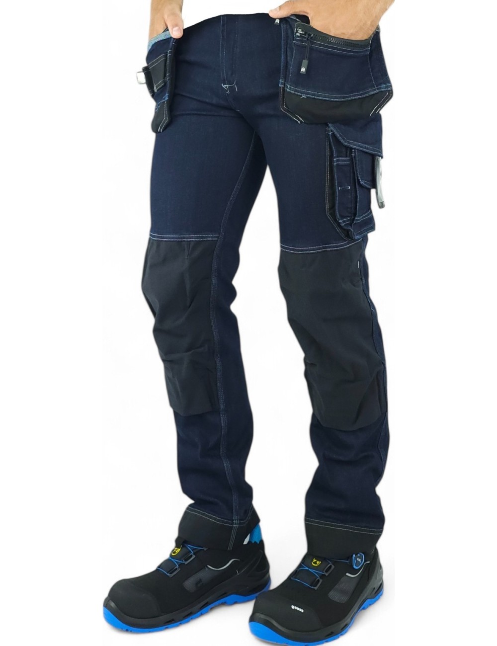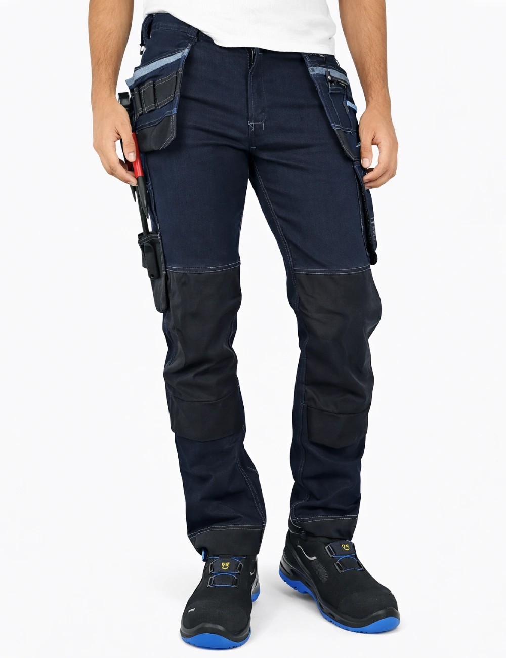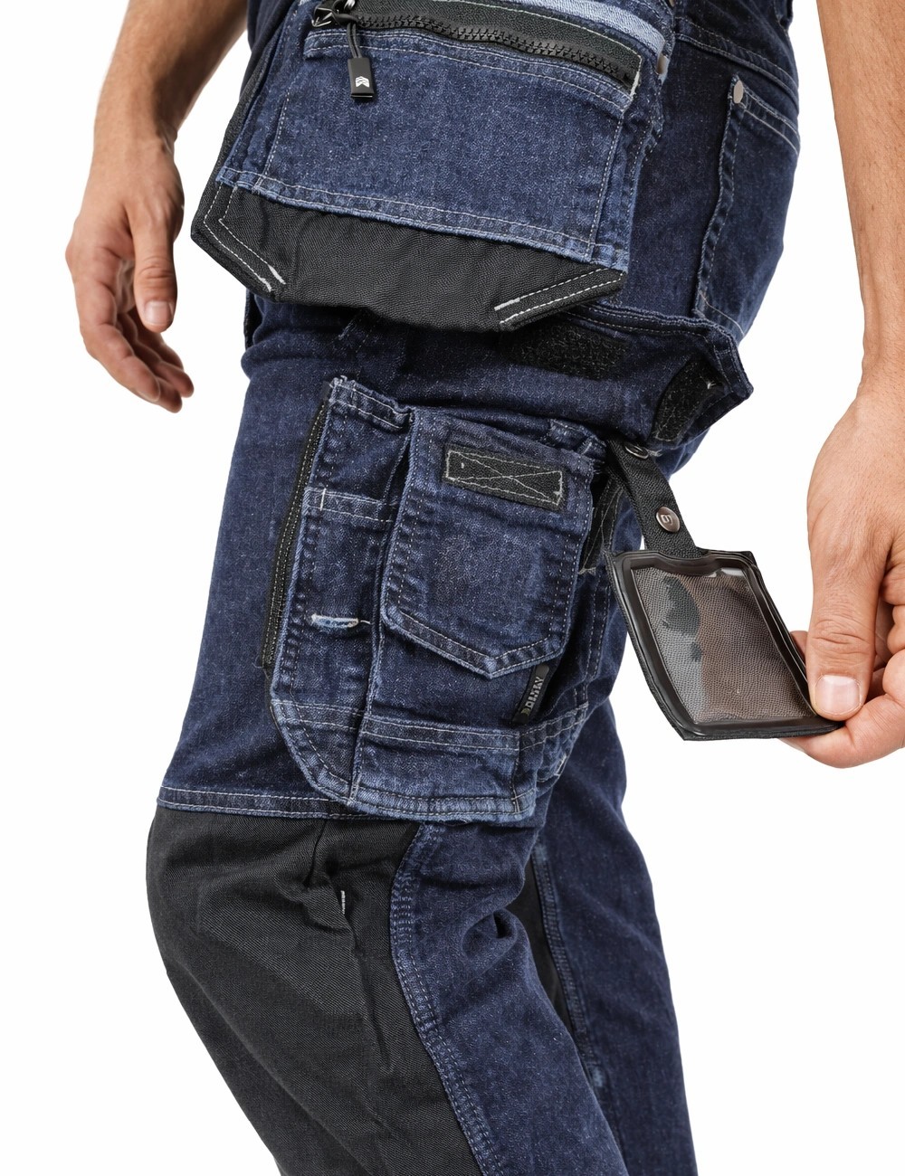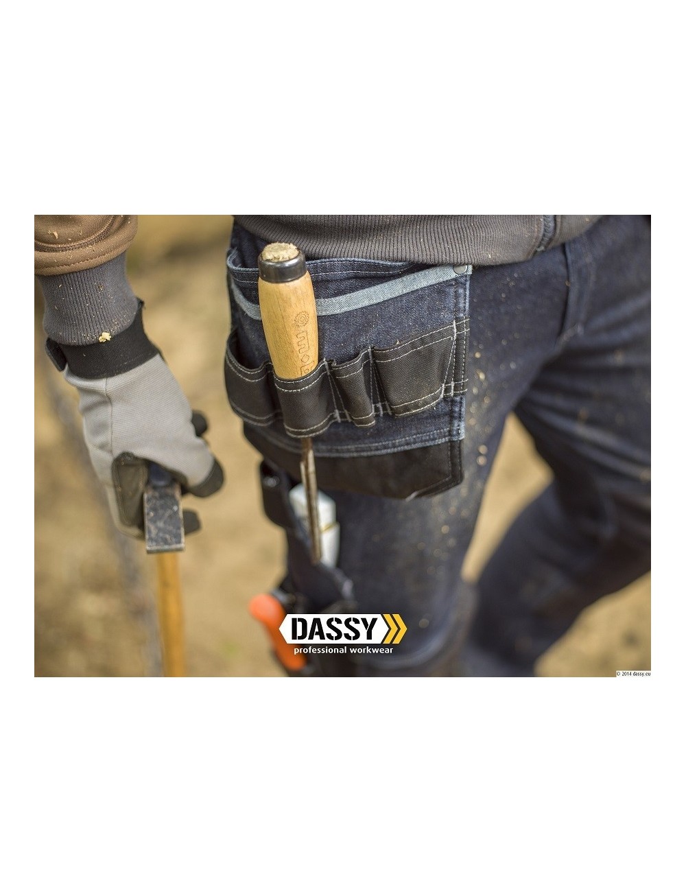 Pantalonii de lucru Dassy Melbourne din denim reprezinta o revolutie in lumea tinutelor de lucru. Materialul moale si elastic ofera un confort exceptional. Croiul slim fit arata grozav pe orice silueta, ceea ce ii face din ce in ce mai cautati de profesionisti. Acesti pantaloni ofera toate caracteristicile esentiale pentru munca: buzunare pentru genunchiere (se recomanda modelele de la acelasi producator), buzunare suspendate intarite cu Cordura pentru accesorii esentiale. De asemenea, dispun de bucle suplimentare pentru unelte, buzunare mici, m.in. un buzunar pentru telefon si suporturi pentru legitimatii. Pantalonii Melbourne se inchid cu fermoar si nasture. Cusaturile cu trei ace asigura o durabilitate exceptionala. Acesti pantaloni de lucru sunt un must-have pentru orice pasionat de imbracaminte profesionala.