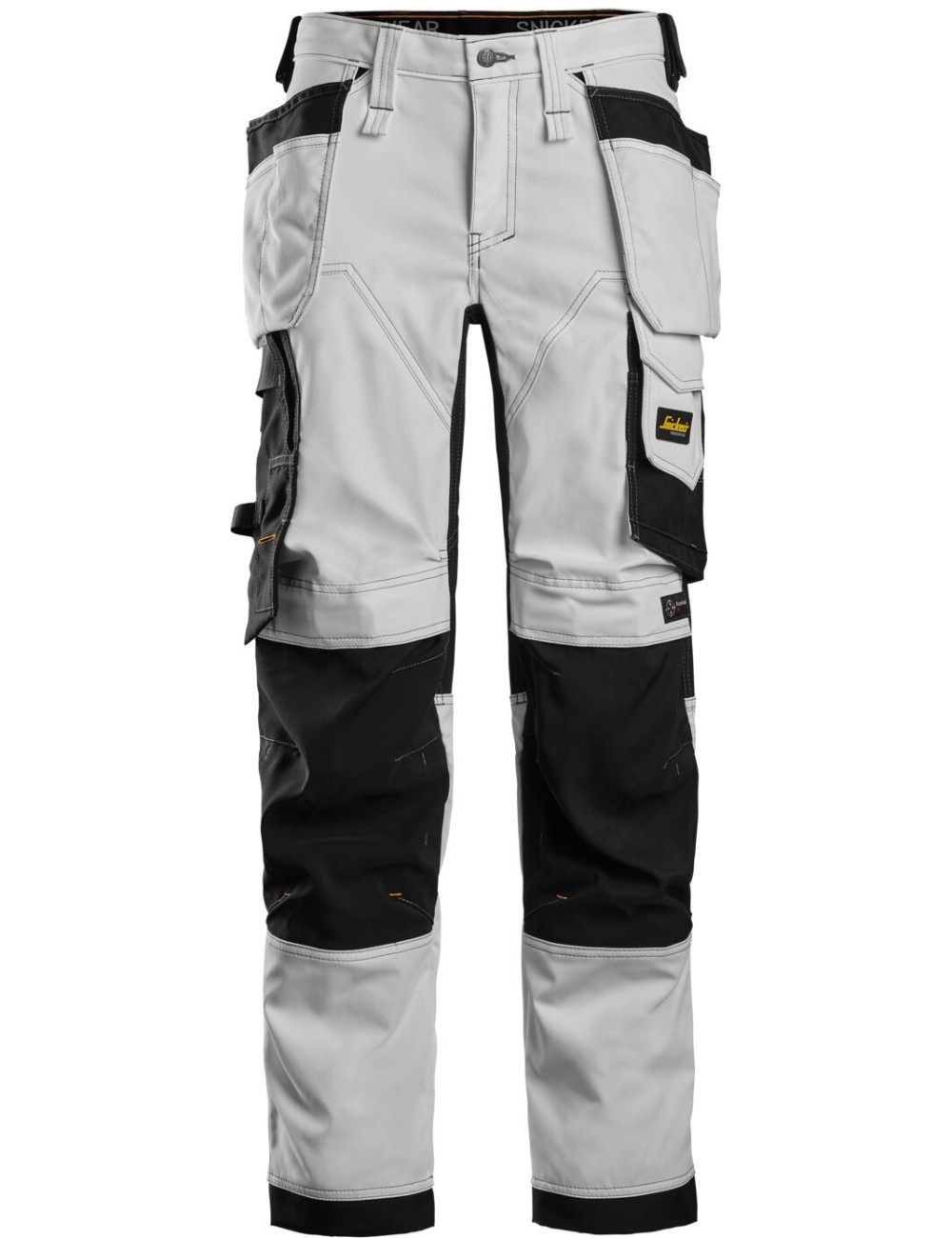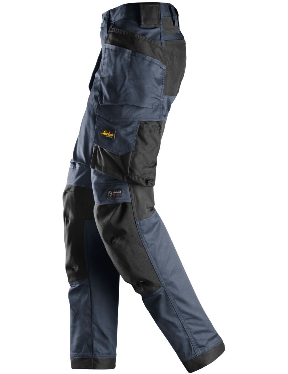 Pantalonii Snickers Workwear sunt confectionati dintr-un material complet elastic, bidirectional. Panourile suplimentare elastice in patru directii din spate permit o libertate de miscare si mai mare. Acest model va permite sa pastrati cu dumneavoastra cele mai importante unelte si accesorii in orice moment! Pe langa buzunarele functionale tip toc, pantalonii dispun si de un buzunar pentru rigla cu suport pentru cutit, un buzunar pentru picior, numeroase bucle si manere si un buzunar cargo cu suport pentru card de identitate. Pentru un confort si mai mare, pantalonii dispun buzunare pentru genunchiere cu sistem KneeGuard (conform EN14404). Pentru o durabilitate sporita, intaririle Cordura se gasesc atat pe genunchi, cat si pe buzunarele tip toc.