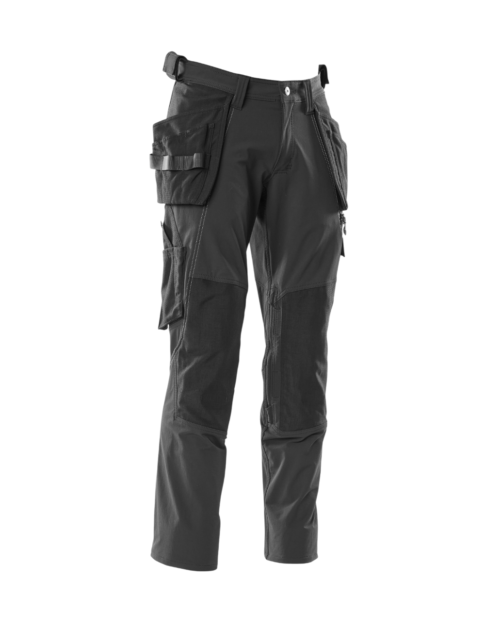 - Buzunare pentru genunchi – reglabile pe înălțime și certificate pentru inserții de protecție mari, în conformitate cu EN 14404-3.