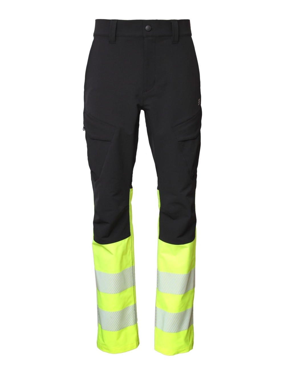 - Pantaloni elastici, certificati, care pot fi purtati ca pantaloni de trening. Materialul contrastant de inalta vizibilitate si benzile reflectorizante segmentate de 5 cm latime respecta standardul EN ISO 20471.