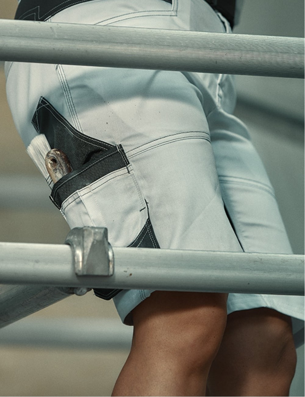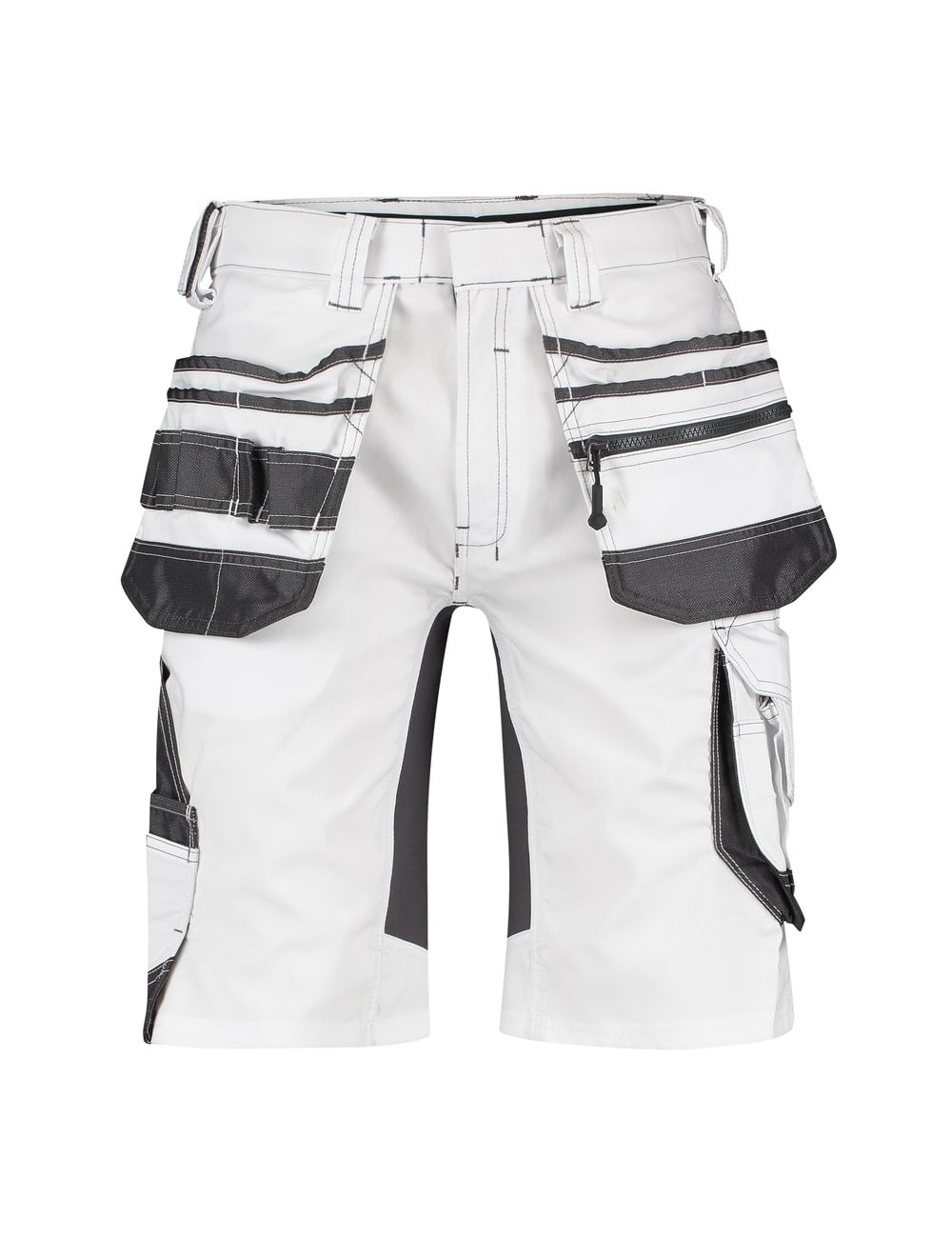 Conceputi special pentru zugravi, acesti pantaloni scurti din colectia Painters reprezinta o alegere excelenta pentru companiile din industria renovarilor si finisajelor. Materialul alb, fabricat dintr-un amestec de bumbac si poliester, este usor de intretinut vizual atunci cand tencuiala alba, praful sau mortarul nu sunt vizibile. Materialul elastic, combinat cu insertii flexibile, permite miscarea usoara pe scari, ingenuncherea si ghemuirea. Buzunare suspendate cu compartimente suplimentare cu fermoar sunt utile pentru lucrarile de pregatire a zugravelii, cum ar fi lipirea cu banda adeziva sau protejarea suprafetelor.