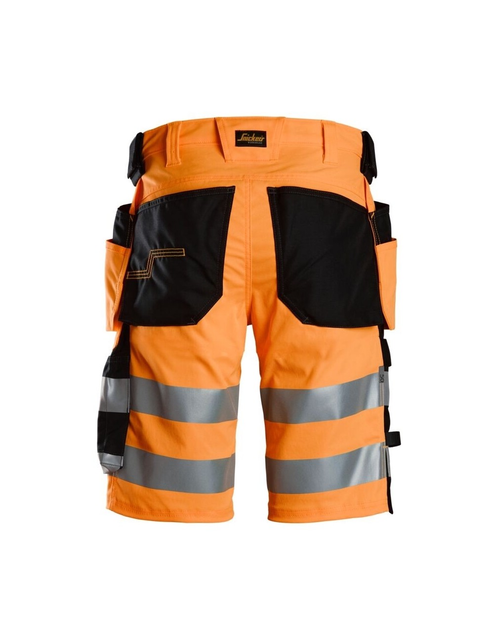 Pantalonii scurti de lucru Snickers 6135, confectionati din material elastic si de inalta vizibilitate, ofera libertatea de miscare necesara pentru o munca confortabila si siguranta necesara pe santier, pe drum sau la coborarea de pe un utilaj de constructii.