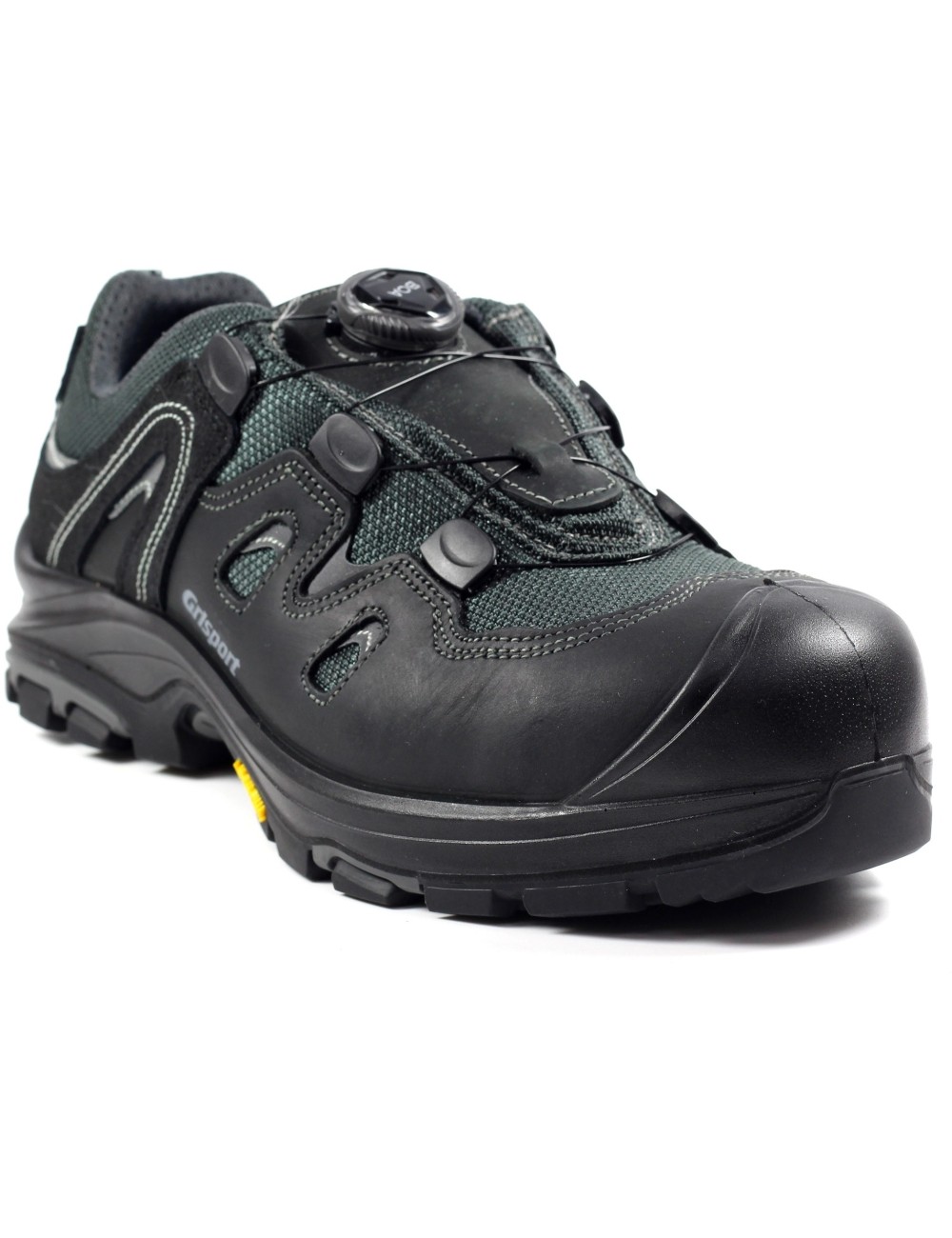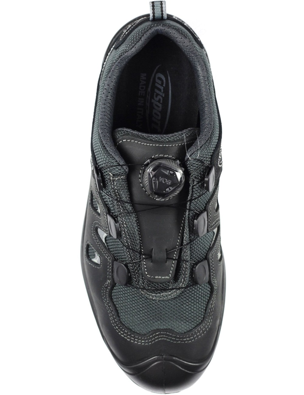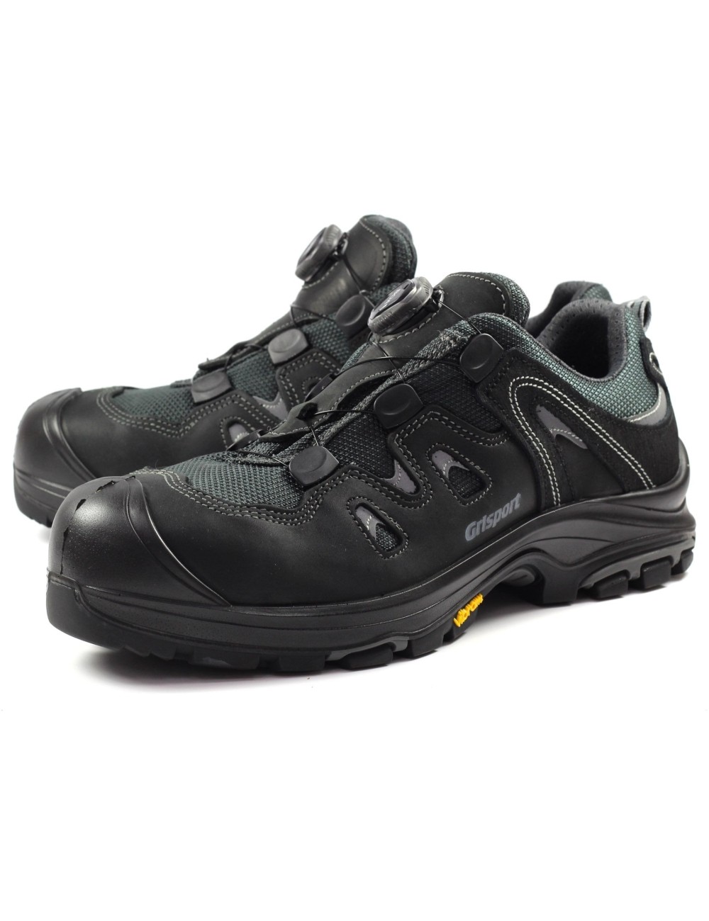 pantofi de lucru Grisport Imola , extrem de durabili, cu protectie S3. Fabricati din piele de vaca Dakar uleiata de inalta calitate, acestia dispun de o talpa interioara rezistenta la perforare si un varf din otel pentru siguranta in timpul lucrului. Talpa Vibram, cunoscuta in incaltamintea de alpinism si trekking, imbunatateste aderenta, ofera o absorbtie excelenta a socurilor si stabilizeaza piciorul. Este rezistenta la abraziune, alunecare si ulei. Prelungeste eficient durata de viata a pantofului, reduce oboseala si creste siguranta utilizatorului. Acesti Pantofi barbatesti dispun si de sistemul modern de insireturi BOA , care permite incaltarea si descaltarea rapida si usoara. Un rotita reglabila, in loc de sireturi traditionale, permite o potrivire uniforma si stabila. Acest model indeplineste cerintele standardelor EN ISO 20345:2011 – UNI EN ISO 20345:2012, S3, SRC.