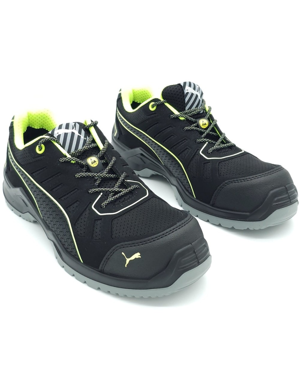 Pantofi de lucru Puma Fuse TC S1P sunt pantofi sport. Acestia combina tehnologii inovatoare cu confort ridicat, fiind ideali pentru industriile care necesita mers pe jos mult. Acesti pantofi usori, cu varf de otel, ofera protectie si confort maxim pe tot parcursul zilei de lucru.