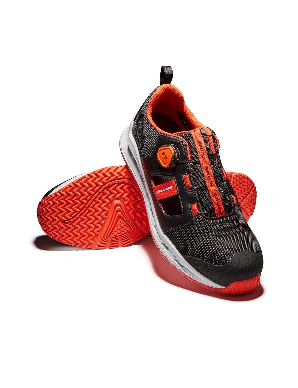 Pantofi de lucru Tempest de la renumitul producator Solid Gear ofera respirabilitate la 360° datorita Technology Hive, care permite aerului sa circule prin talpa. Umiditatea este eliminata prin canalele de aer situate in talpa. Acest model prezinta insertii din plasa si fara plasa, sporind si mai mult respirabilitatea. Pantofi de lucru sunt echipati cu BOA® Fit System pe lateral pentru o insiretare usoara si o potrivire personalizabila. Spuma EVA cu densitate dubla, impreuna cu o cupa din TPU la calcai, ofera o amortizare si o stabilitate excelente. Pantofi de lucru sunt echipati cu un bombeu de protectie din fibra de sticla si o talpa intermediara rezistenta la perforare. Solid Gear Tempest sunt negri cu accente portocalii. Designul lor sportiv ii face potriviti atat pentru munca, cat si pentru purtarea de zi cu zi.