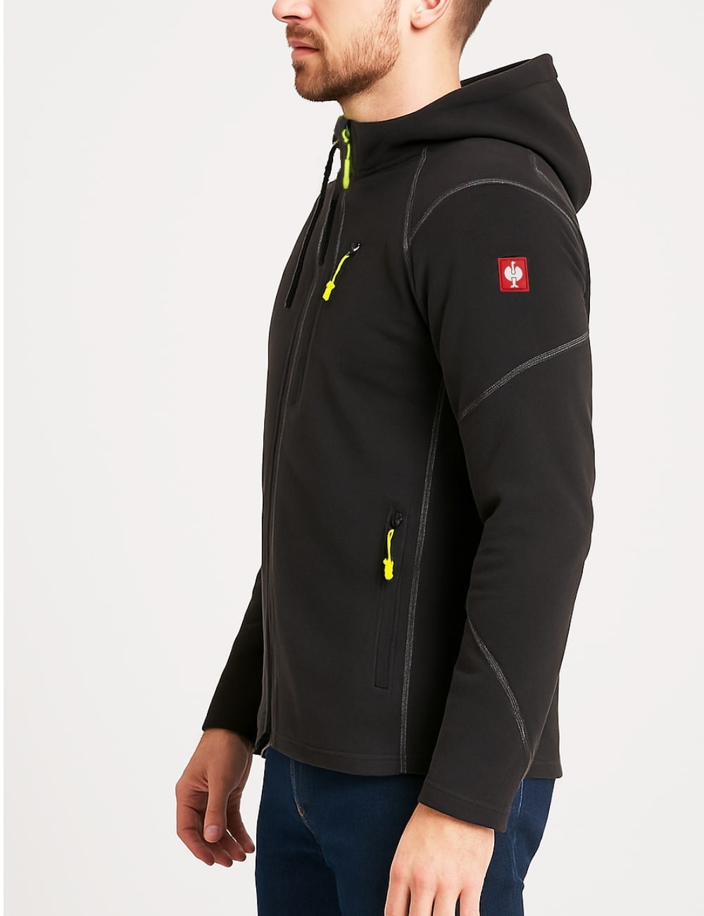 Bluza Engelbert Strauss es Motion 2020 este confectionat din bluza Materialul izoleaza eficient impotriva frigului si a vantului, eliminand in acelasi timp excesul de caldura si umiditate. Pielea ta ramane uscata chiar si in timpul muncii intense si prelungite. Hanoracul es Motion 2020 este confectionat dintr-un material care rezista la scarunchire si la depuneri de pete, astfel incat isi va mentine aspectul excelent pentru o lunga perioada de timp. Bluza inchide cu un fermoar durabil cu aparatoare de barbie. Are doua buzunare laterale la nivelul soldurilor si un buzunar cu fermoar la piept. Fermoarele sunt de un galben reflectorizant contrastant. Gluga larga si incapatoare este reglabila cu snururi. In plus, gulerul inalt si ridicat, combinat cu gluga, ofera o protectie eficienta a fetei si a capului impotriva frigului si a vantului. Bluza es Motion este o alegere excelenta pentru toamna si iarna care vine, ca strat sub o jacheta sau o vesta.