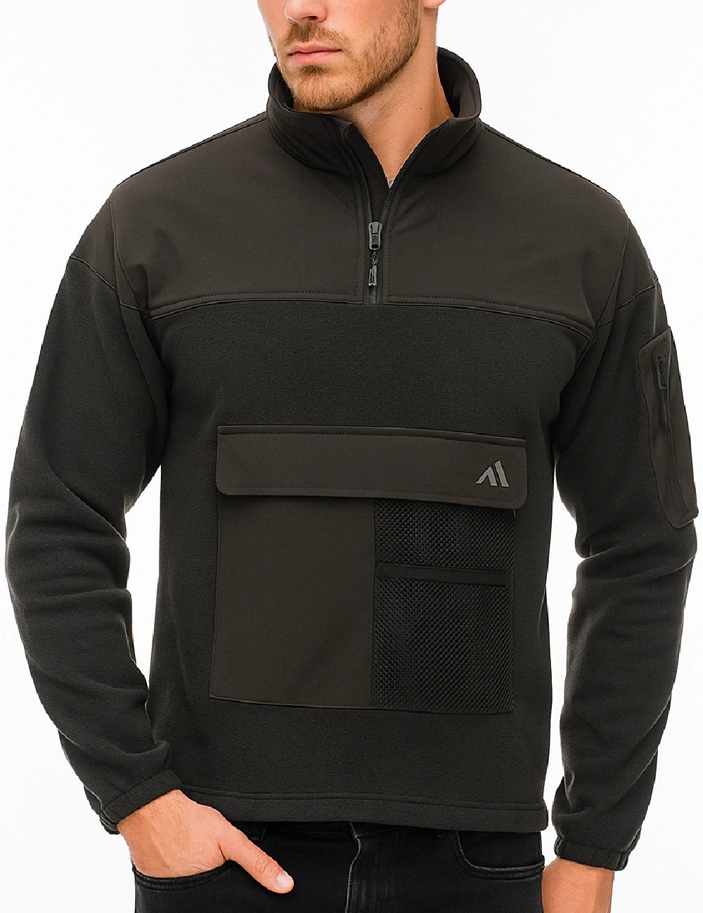 - Material principal: microfleece 100% poliester, 264 g/m² – moale, calduros si respirabil, ideal ca strat intermediar.