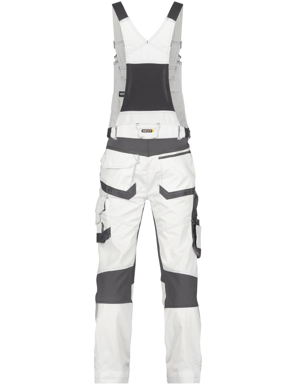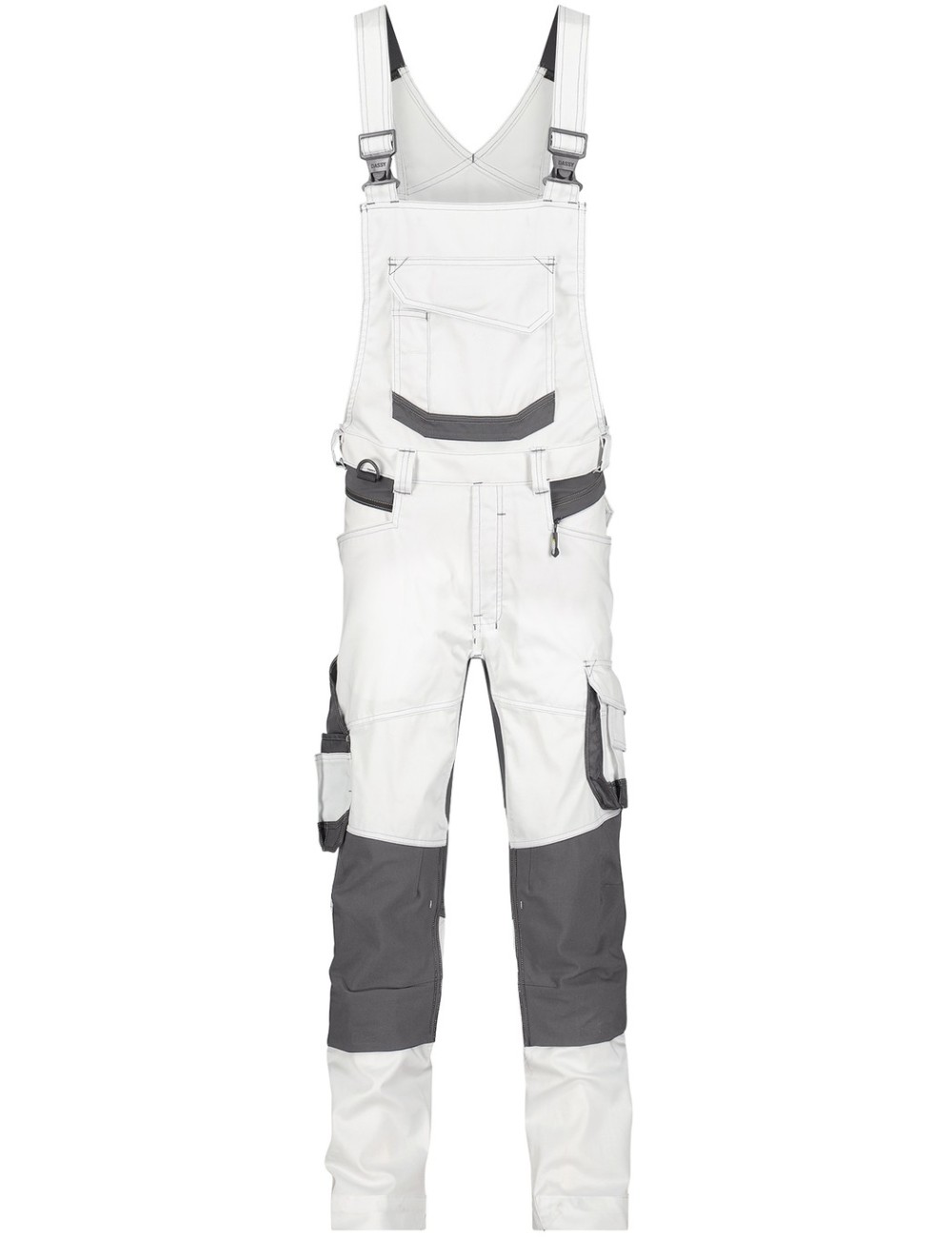 Salopeta de lucru Dassy Tronix Painter Work cu panouri elastice este o alegere perfecta pentru zugravi si echipe de finisare. Materialul elastic alb, cu un continut ridicat de poliester, este usor de curatat, iar panourile elastice permit o munca confortabila, indiferent de pozitia de lucru.