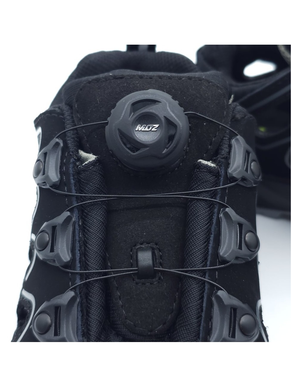 Sandalele de lucru BO MOZ sunt un model foarte usor si confortabil. Partea superioara este confectionata din piele nubuc durabila, cu orificii de ventilatie, asigurand o respirabilitate excelenta in zilele calduroase. System de insiretare rapida cu disc insurubat permite o potrivire confortabila. Materialele usoare utilizate in constructia lor permit o greutate foarte redusa. Pantofi sunt flexibili si foarte confortabili. Recomandam acest model pentru utilizare in productie, transport si depozit.