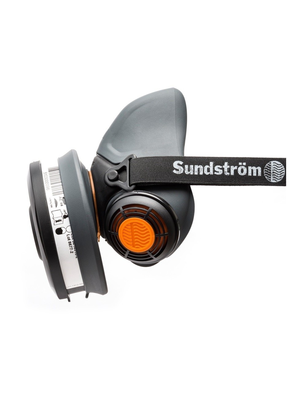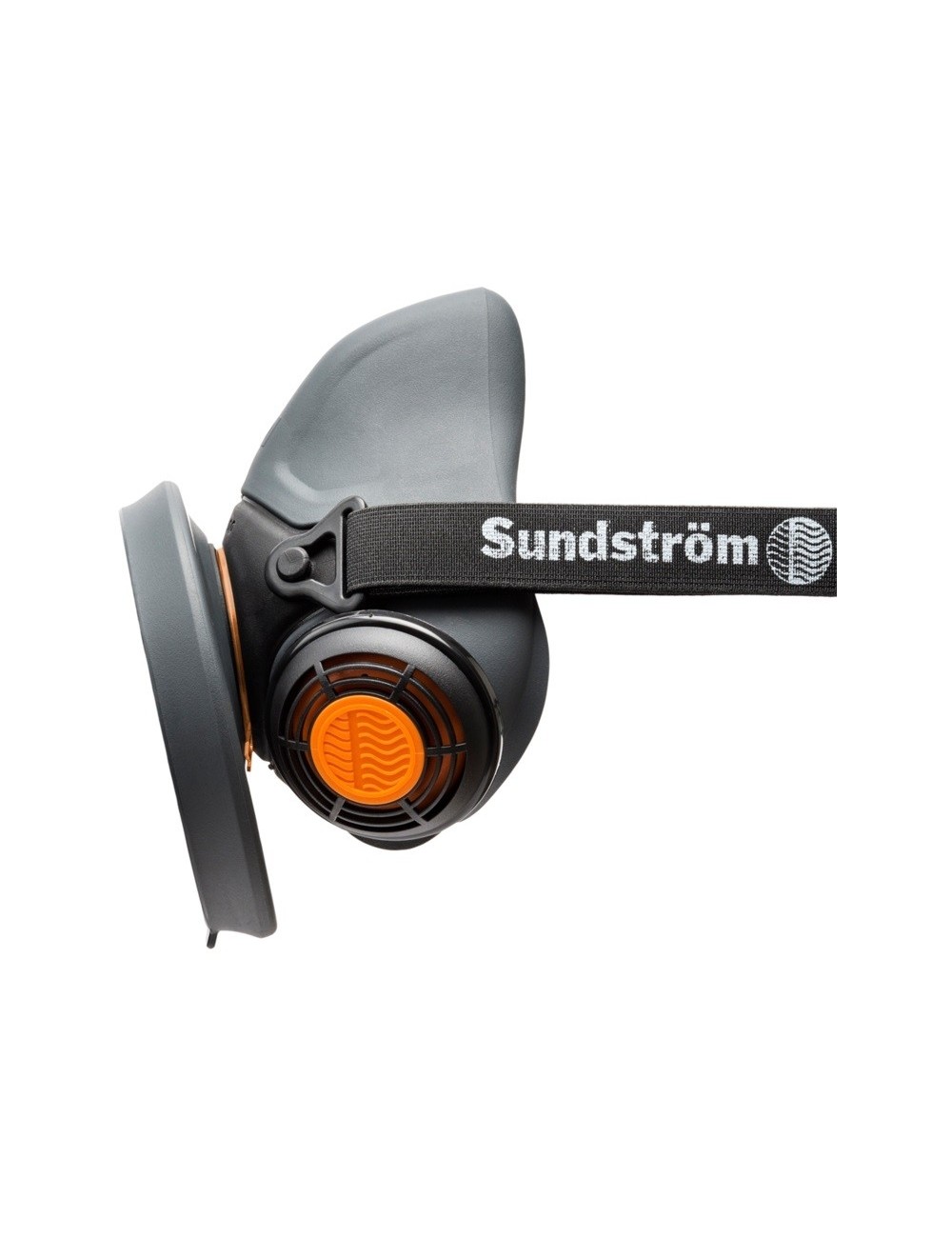 Fabricata din elastomer termoplastic moale (TPE) si polipropilena (PP), semimasca Sundstrom este un produs versatil. Cu posibilitatea de a monta o varietate de filtre si canistre, masca poate fi perfect adaptata conditiilor de lucru. Acest model este potrivit si pentru persoanele cu pielea sensibila - conform producatorului, materialele utilizate in masca sunt aprobate pentru contactul cu alimentele, ceea ce inseamna ca riscul de alergii dupa contactul cu pielea este minim. Doua valve de expirare asigura o rezistenta la expirare exceptional de scazuta. Aceste valve sunt protejate de capace specializate care impiedica patrunderea prafului si a murdariei. Important este ca aceasta este o piesa inlocuibila a mastii, astfel incat puteti inlocui cu usurinta capacele cu unele noi si va puteti bucura de o masca igienic curata. Valva de inhalare situata in centrul mastii permite atasarea usoara a unui filtru sau a unei canistre. O valva de inhalare este egala cu un filtru - o solutie foarte economica in comparatie cu alte masti reutilizabile. Pentru o protectie sporita, filtrele si absorbantele Sundstrom pot fi combinate pentru a crea un set personalizat!