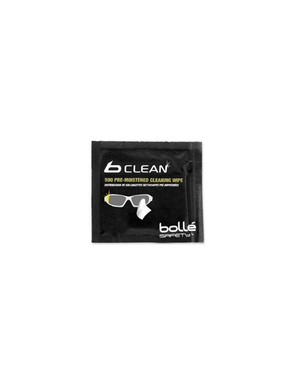 O laveta umeda pentru curatarea vizierei ochelarilor de protectie si a vizierelor, imbibata in lichidul Bolle B-Clean, care nu lasa reziduuri si ofera suprafetei curatate proprietati antistatice si antireflexive.