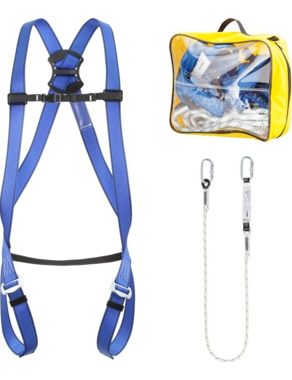 - Kit complet pentru lucru la inaltime – include un ham de siguranta P 01, un absorbitor de energie BW100 cu o snur LB101, doua carlige cu arc din otel AZ011 si o geanta de transport AXT2. Ideal pentru aplicatii de siguranta de baza.