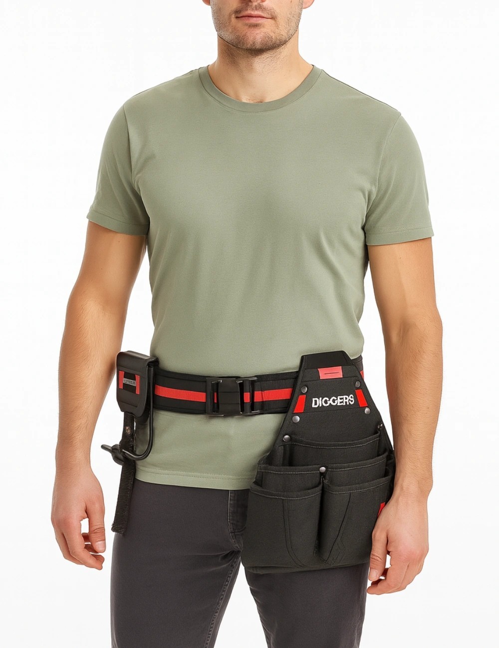 Un set practic de genti pentru scule Diggers concepute pentru dulgheri, constand din cureaua de scule DK538, un suport pentru ciocan si o geanta mare de scule DK522. Vedeti articolele incluse in set: