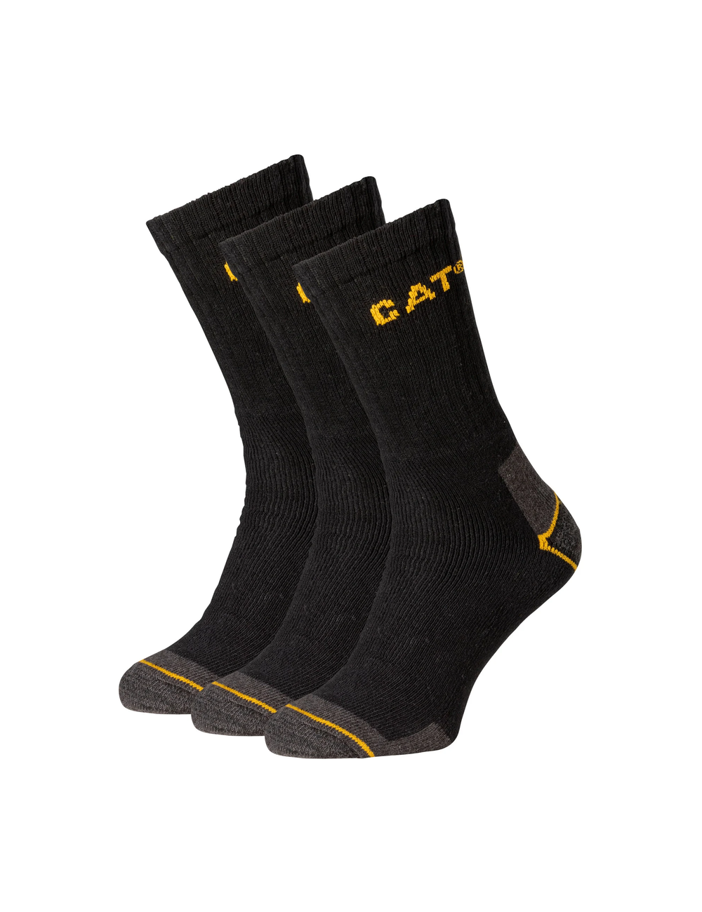 Aceste sosete de lucru rezistente, vandute in pachet de 3, sunt completarea perfecta pentru orice profesionist care poarta zilnic bocanci de lucru. Aceste sosete Caterpillar sunt fabricate dintr-o combinatie de materiale naturale si sintetice pentru a asigura o respirabilitate si un confort excelente. Fabricate din bumbac cu adaos de poliamida, poliester si elastan, ofera o potrivire excelenta si sunt respirabile. Zonele calcaiului si ale degetelor sunt in plus intarite.