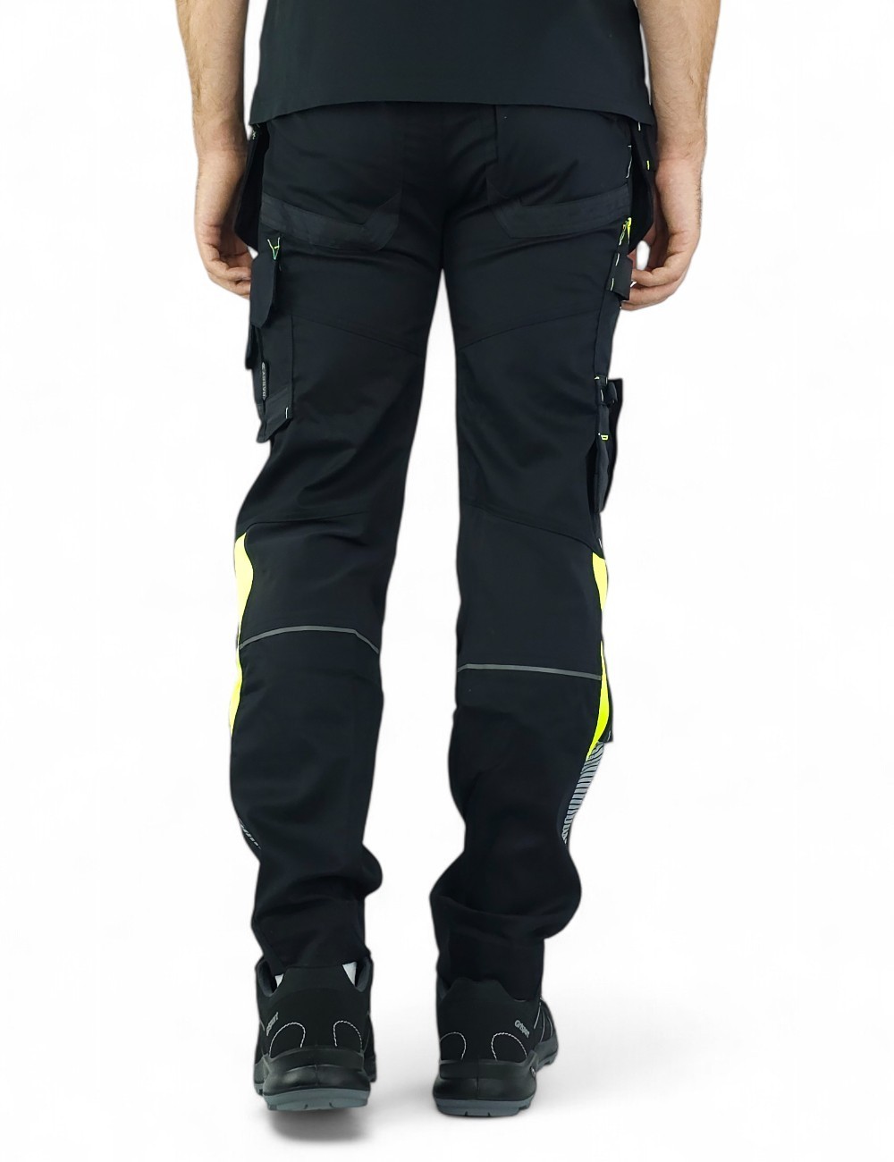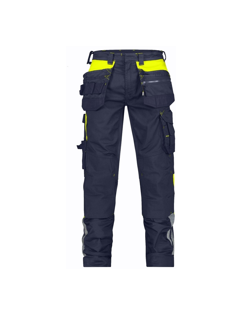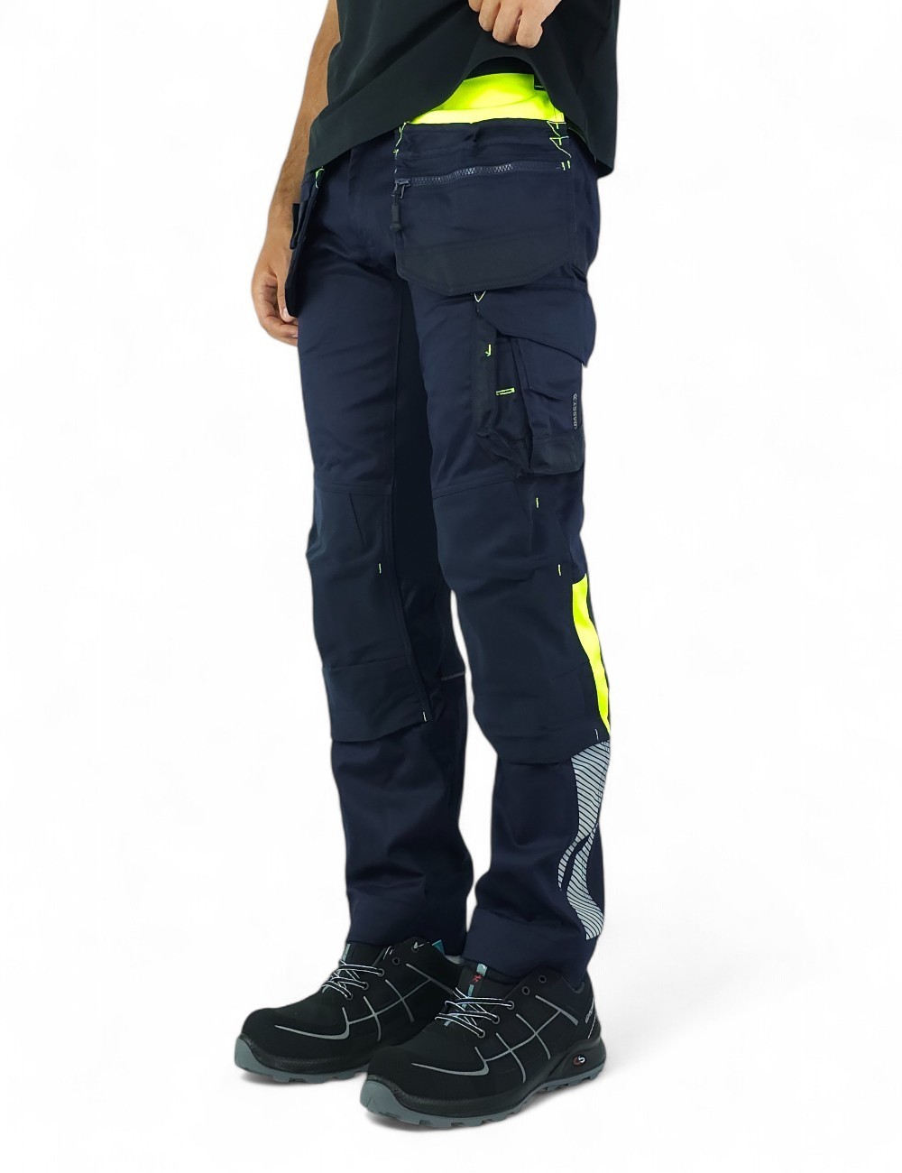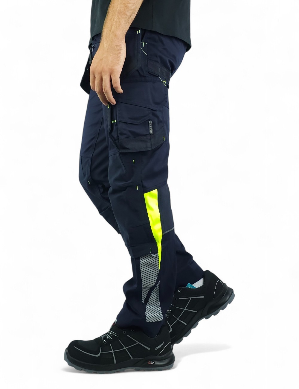 Spodnie robocze Dassy Shanghai z workami kieszeniowymi z kolekcji Dassy Logix to solidna i ciekawa pozycja w szafie każdego fana odzieży roboczej. Wykonane z wysokiej jakości materiałów i zaprojektowane w nowoczesnym stylu i kolorystyce są nie tylko wygodne ale też przyciągają wzrok! Elastyczny w 2 kierunkach materiał główny przyjemnie rozciąga się podczas noszenia, a wstawki z 4 kierunkowego stretchu w kroku, na plecach, pod kolanami i w pasie dają swobodę ruchów podczas pracy. Kolorystyka spodni z kolekcji Logix to prawdziwy przyciągacz wzroku. Ostrzegawcze kolory i odblaskowe wstawki poprawiają bezpieczeństwo, a ciemny kolor główny ułatwia utrzymanie spodni w czystości. Spodnie robocze Shanghai zostały uszyte w kroju slim fit, są dobrze dopasowane ale nie krępują ruchów nawet użytkownikom o szerokich udach. Duża ilość praktycznych kieszeni pozwoli trzymać wszystkie niezbędne narzędzia i wyposażenie zawsze w zasięgu ręki. Kieszenie na miarkę, nóż, czy zapisana na zamek błyskawiczny kieszeń boczna pozwala bezpiecznie przechowywać cenne przedmioty takie jak klucze czy telefon komórkowy. Spodnie wyposażono w kieszenie na wkładki (nakolanniki). Standardowo spodnie Dassy możesz przedłużyć o 5 cm odpruwając jedną nitkę na wykończeniu nogawki.