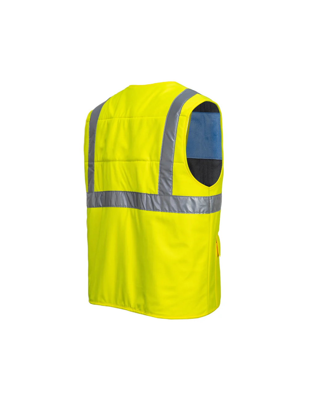 Vesta reflectorizanta de racire CV02 ofera confort termic atunci cand se lucreaza la temperaturi ridicate si siguranta atunci cand vizibilitatea este limitata. Acest produs inovator si modern este conceput pentru a sprijini profesionistii care muncesc din greu pe santierele de constructii si in depozite, unde temperaturile de vara pot atinge niveluri extreme. Datorita tehnologiei avansate de racire, aceasta vesta mentine temperatura optima a corpului, crescand eficienta muncii si imbunatatind bunastarea purtatorului. Elementele de racire raman reci pana la cateva ore dupa activare. Procesul de racire se bazeaza pe un material inovator care se activeaza la contactul cu apa si ramane umed si rece pentru o lunga perioada de timp.