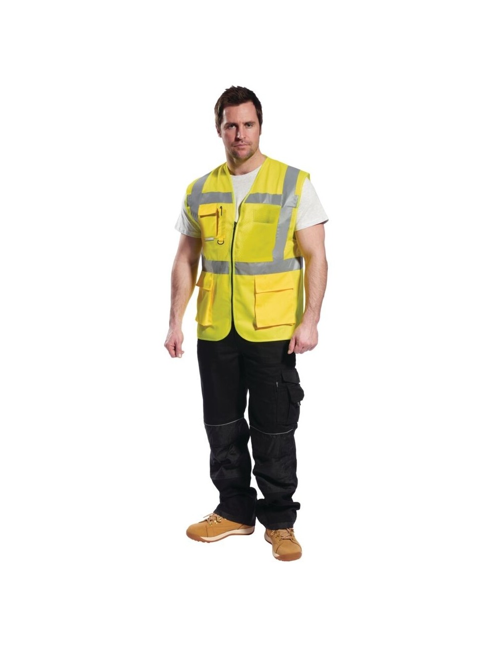 Vesta reflectorizanta din plasa C496 Executive, cu elemente AirMesh respirabile, asigura o circulatie excelenta a aerului, ceea ce este deosebit de important atunci cand se lucreaza la temperaturi ridicate. Echipata cu benzi reflectorizante, garanteaza vizibilitatea atat ziua, cat si noaptea, crescand semnificativ siguranta utilizatorului. O inchidere cu fermoar si numeroasele buzunare pentru obiecte utile fac din vesta C496 un echipament practic pentru fiecare profesionist.